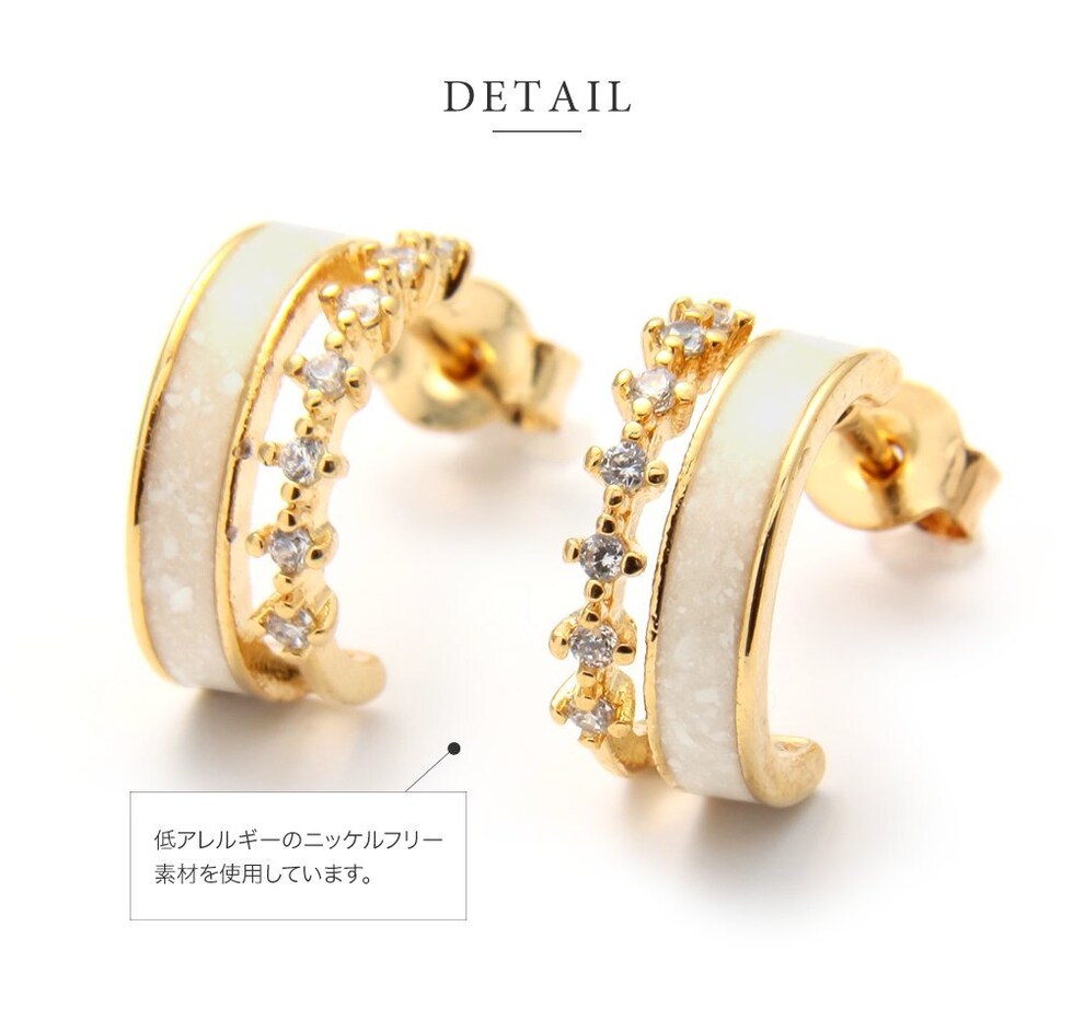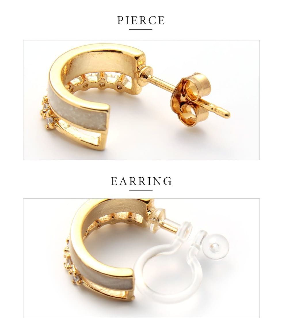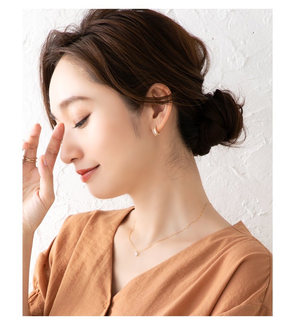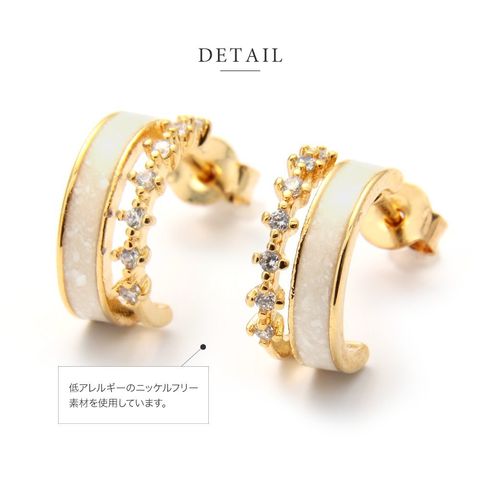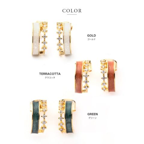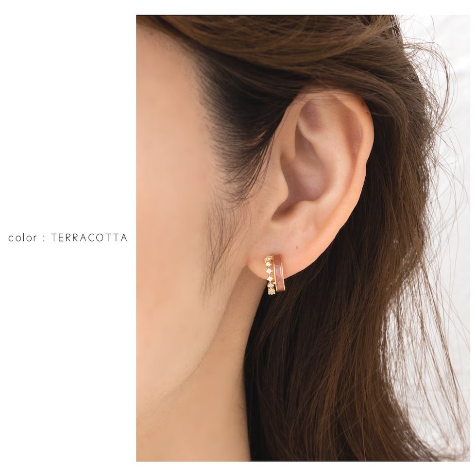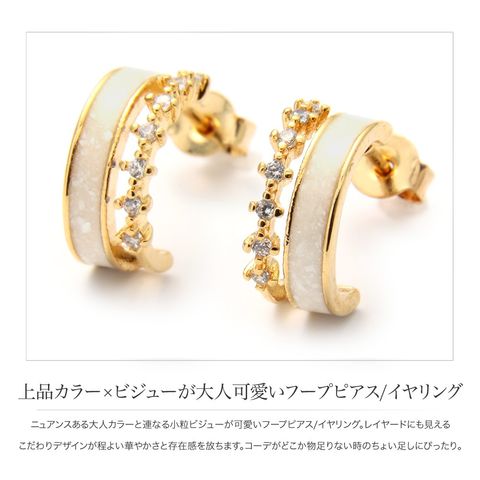ニュアンスある大人カラーと連なる小粒ビジューが可愛いフープピアス/イヤリング。