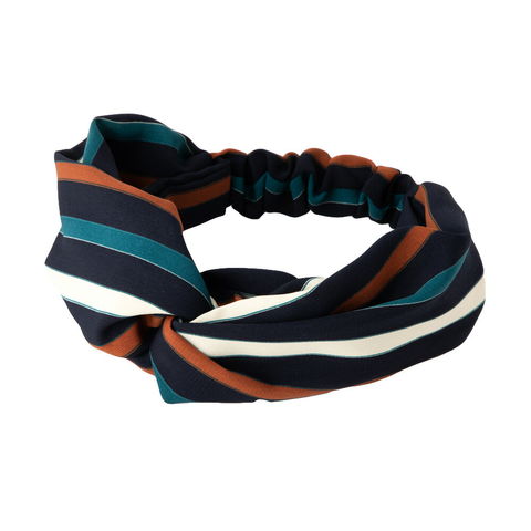 マルチストライプ柄がヘアスタイルのアクセントになるツイストターバン。