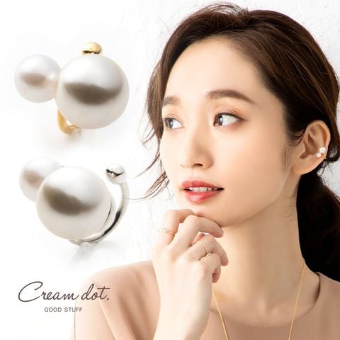 イヤーカフ レディース イヤーカフ イヤカフ 片耳用 パール サイズ 2連 二連 cream dot ゆうパケット [シルバー_フリーサイズ]