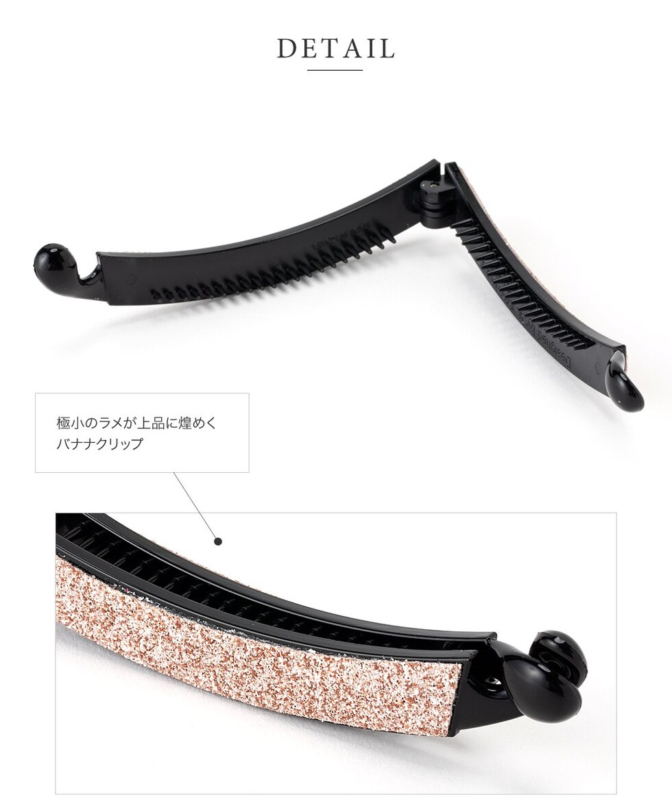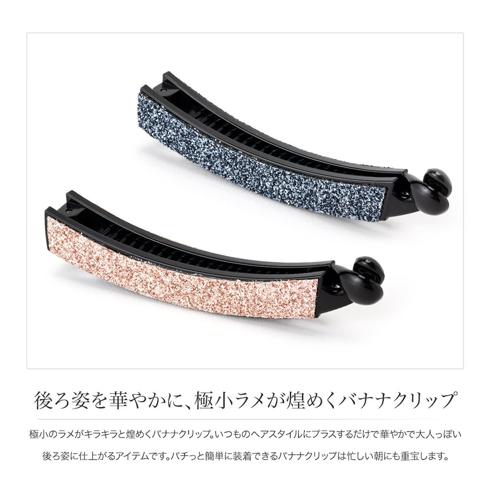 極小のラメがキラキラと煌めくバナナクリップ。