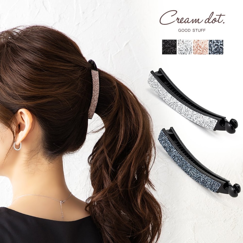ヘアアクセサリー レディース バナナクリップ しっかり留まる ヘアクリップ ラメ 黒 cream dot ゆうパケット [グレー_ワンサイズ]