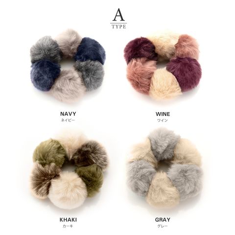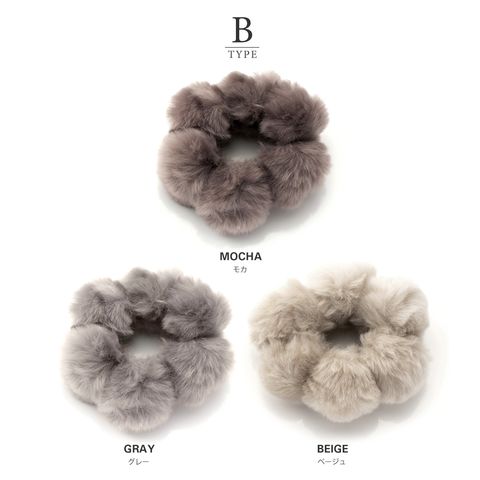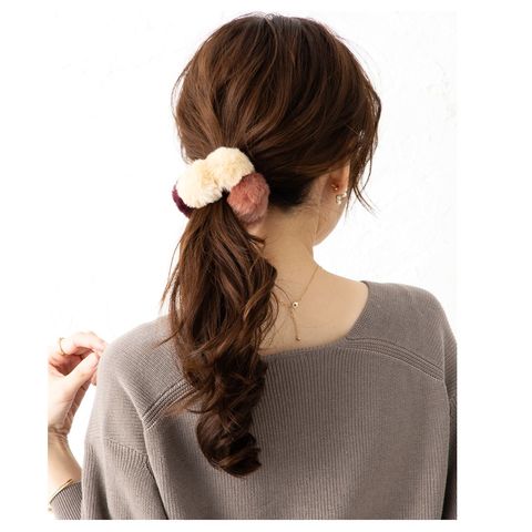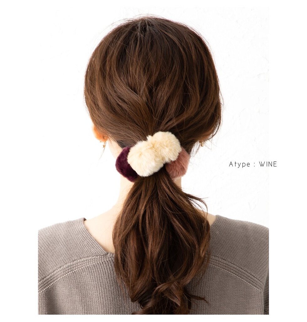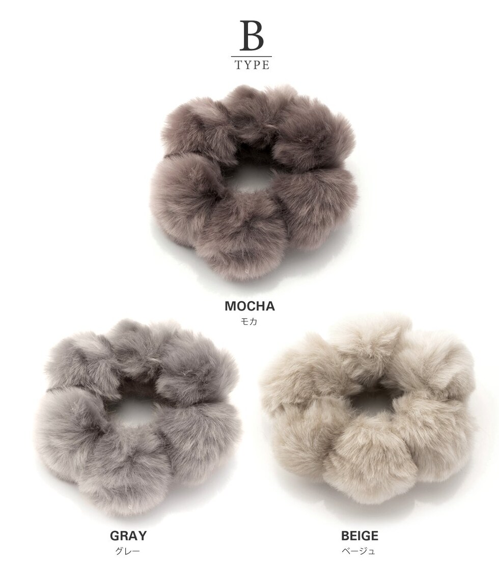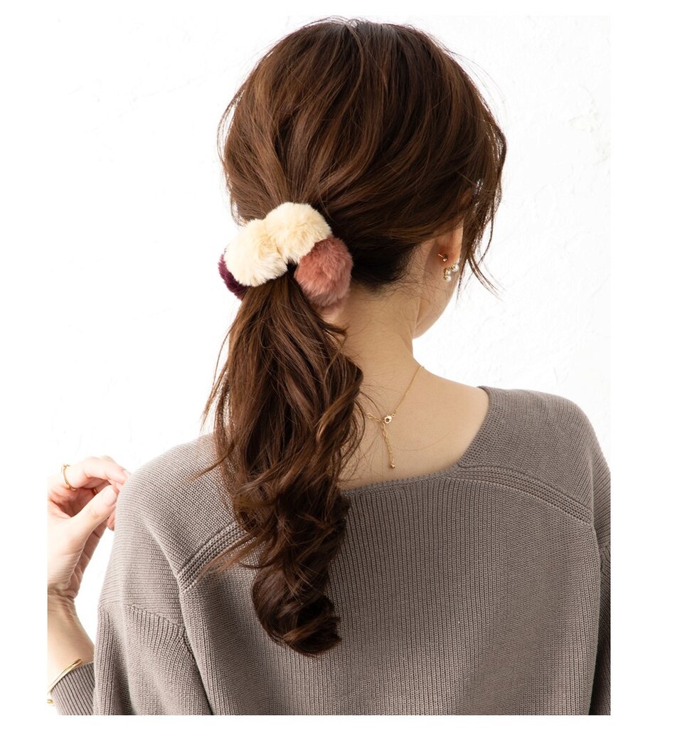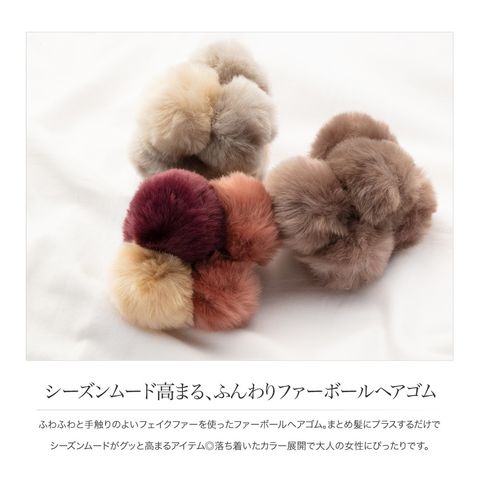 ふわふわと手触りのよいフェイクファーを使ったファーボールヘアゴム。