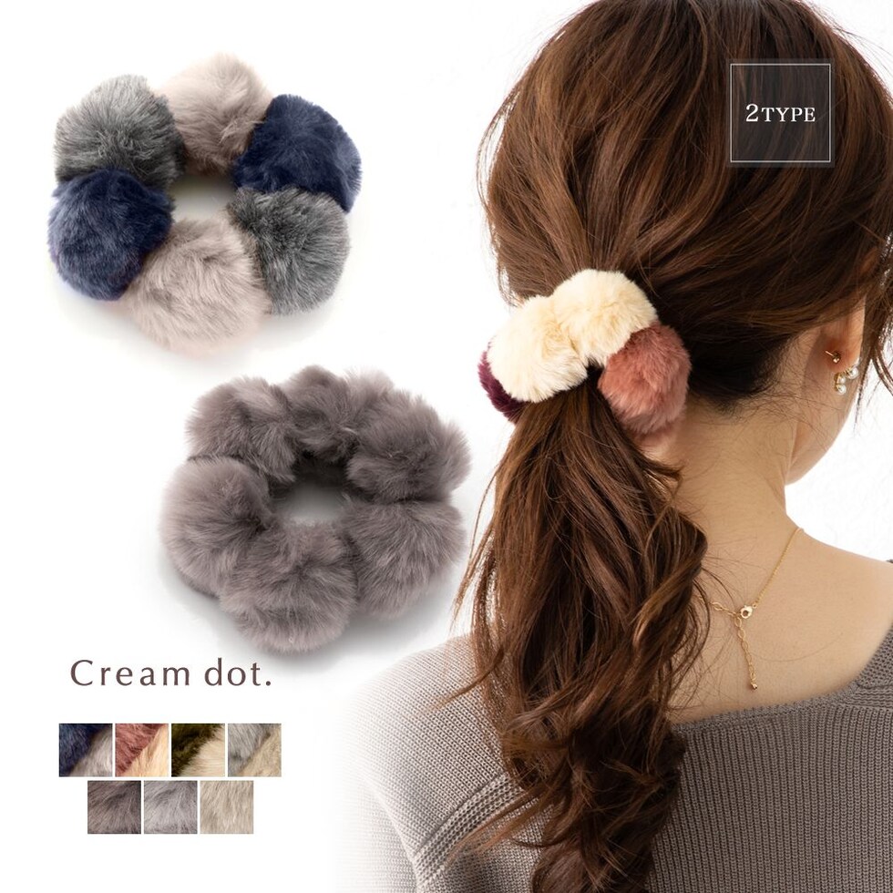 ヘアアクセサリー レディース ヘアゴム ファーボール エコファー フェイクファー ポンポン フレー cream dot ゆうパケット [A:ネイビー_ワンサイズ]