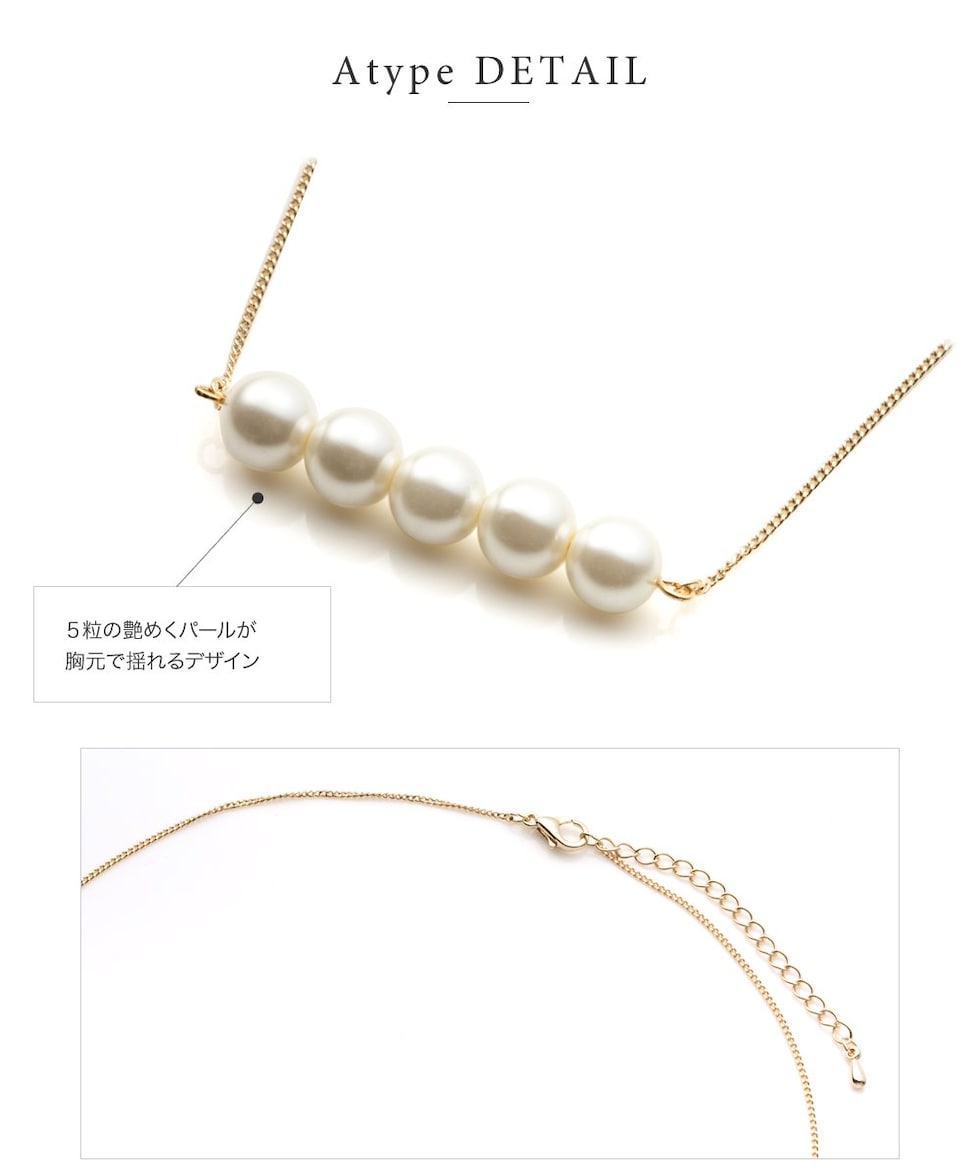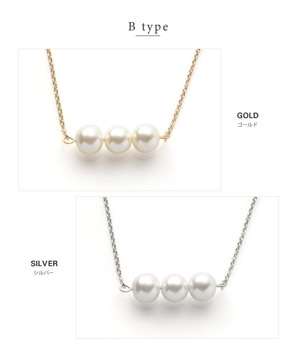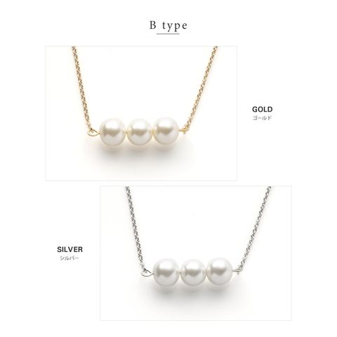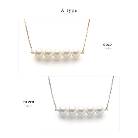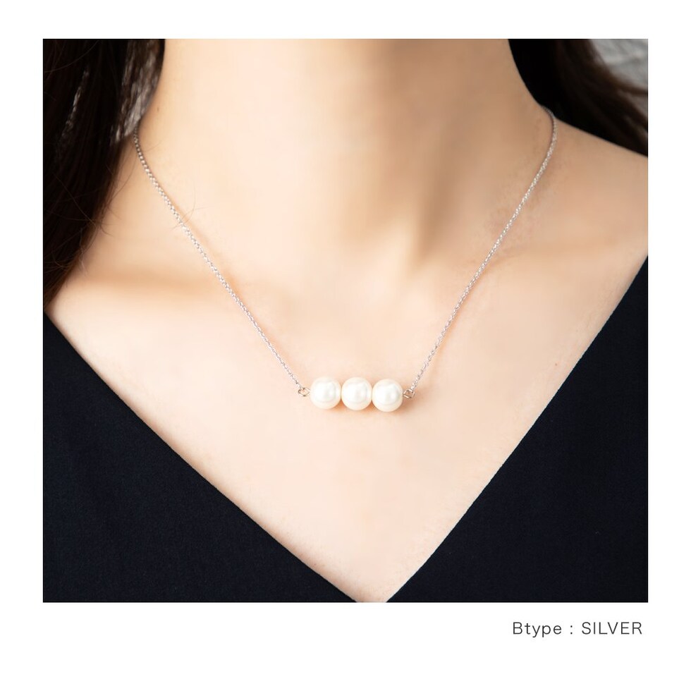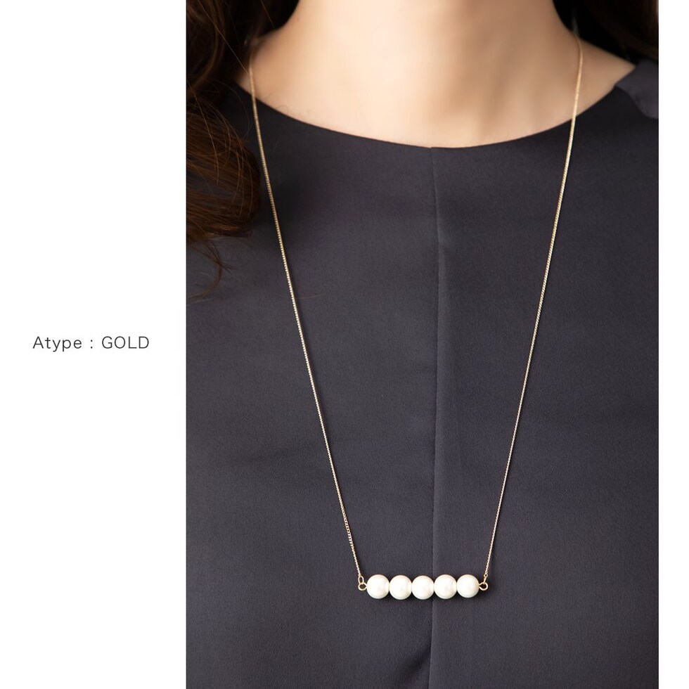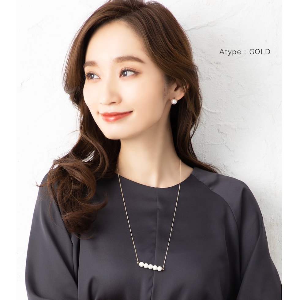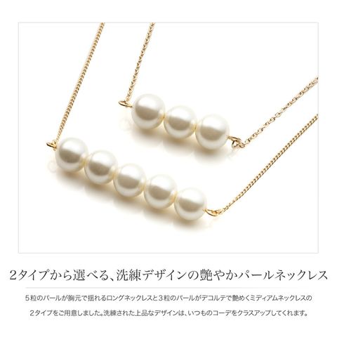 5粒のパールが胸元で揺れるロングネックレスと3粒のパールがデコルテで艶めくミディアムネックレスの2タイプをご用意しました。