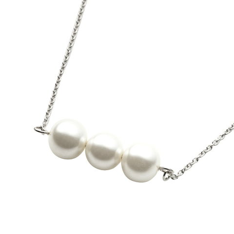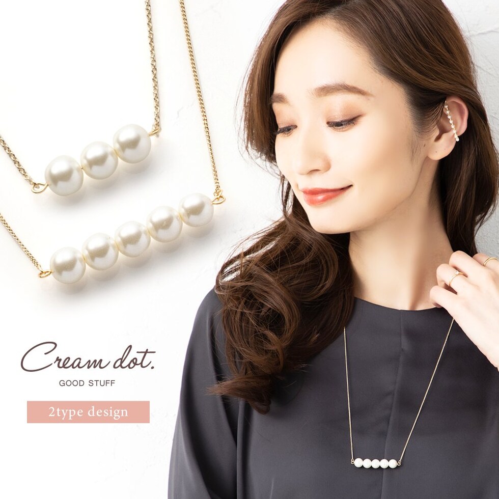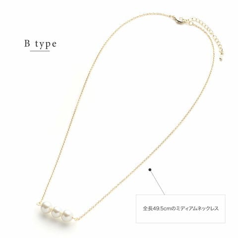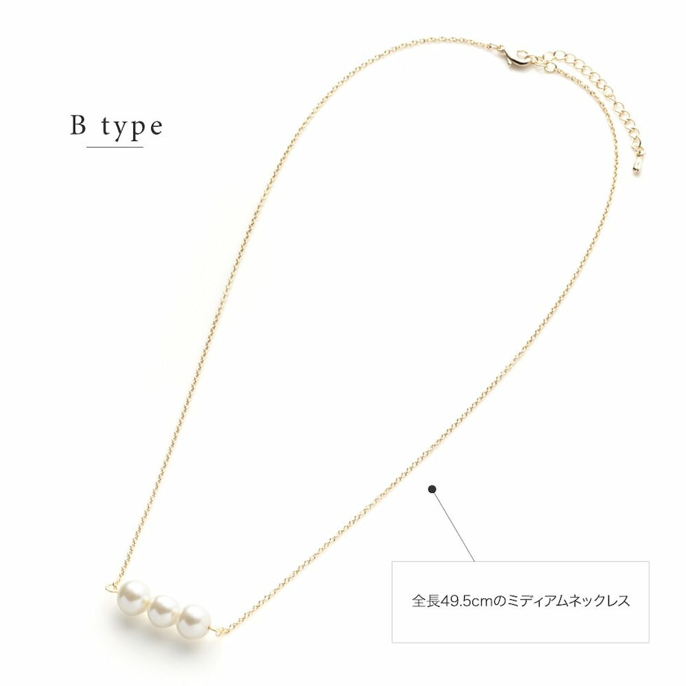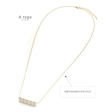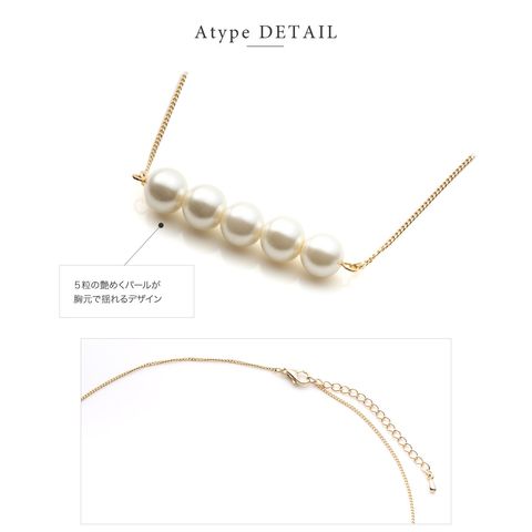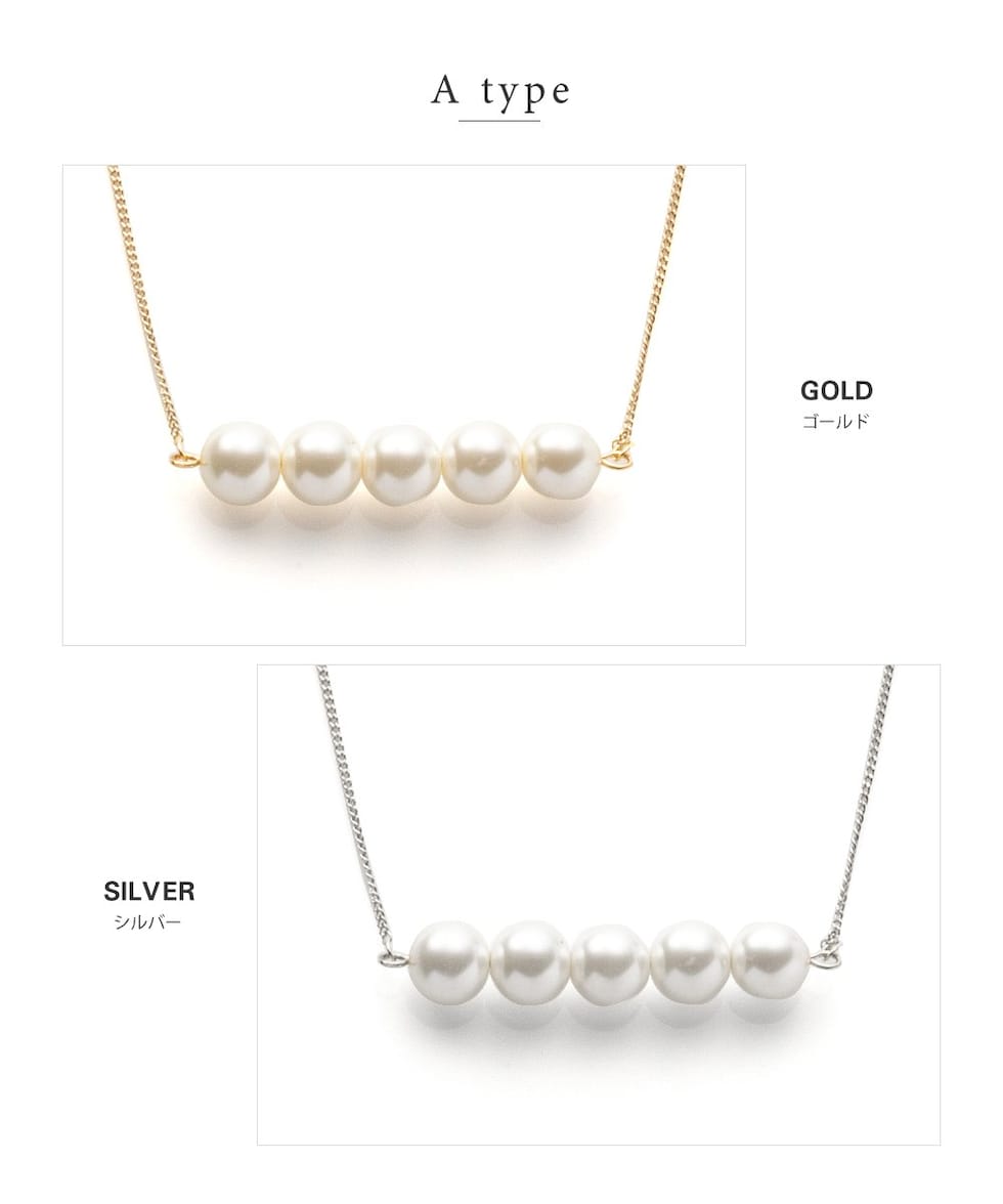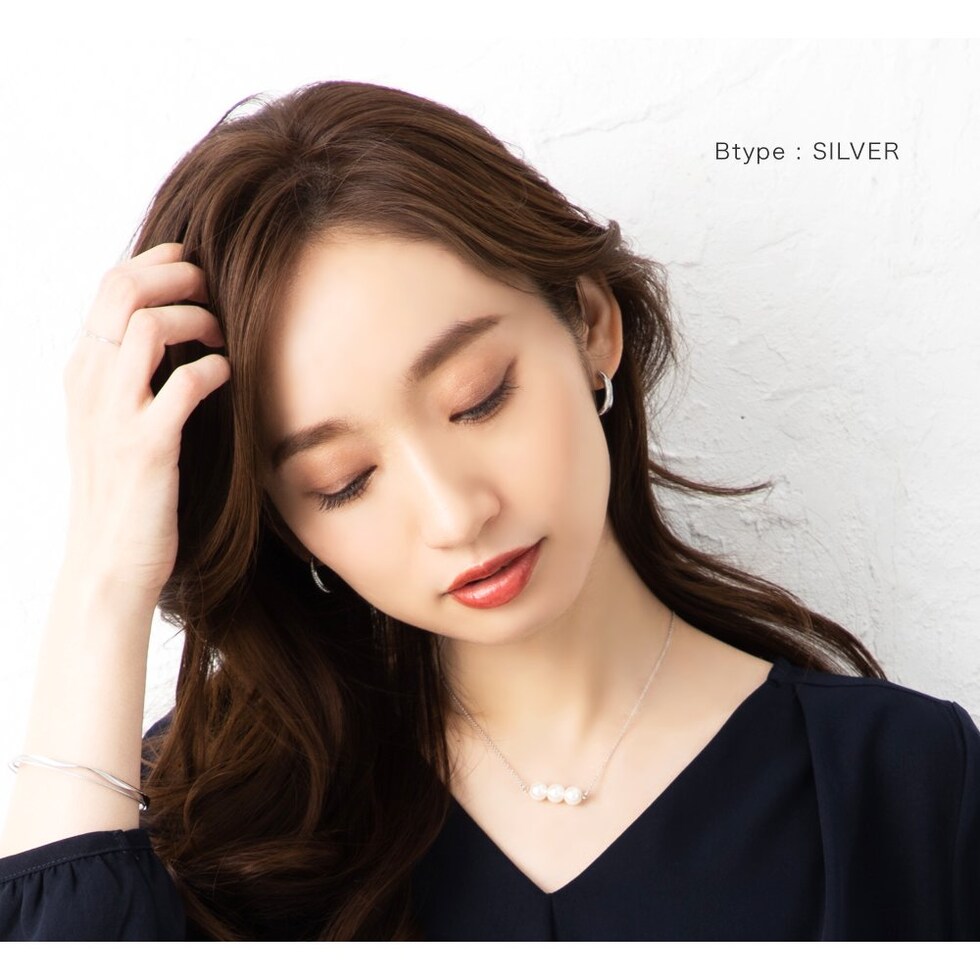 5粒のパールが胸元で揺れるロングネックレスと3粒のパールがデコルテで艶めくミディアムネックレスの2タイプをご用意しました。