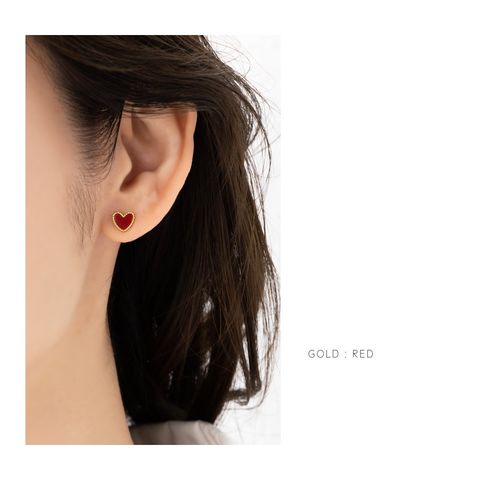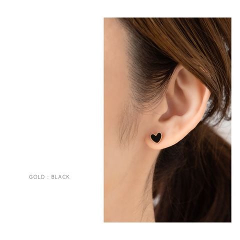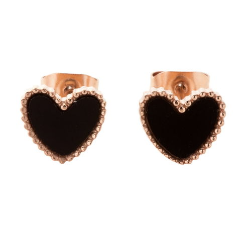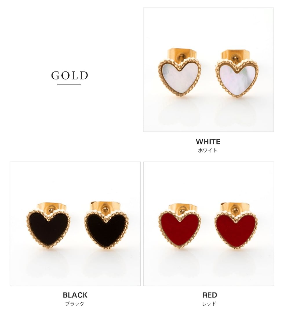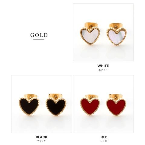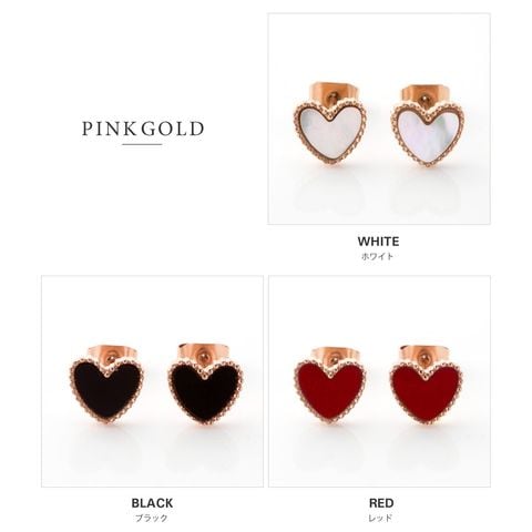 ピアス ステンレス 金属アレルギー サージカルステンレス レディース つけっぱなし ハート ミル打ち 小さめ スタッド レッド cream dot ゆうパケット [ピンクゴールド×ブラック_ピアス]
