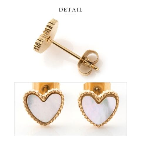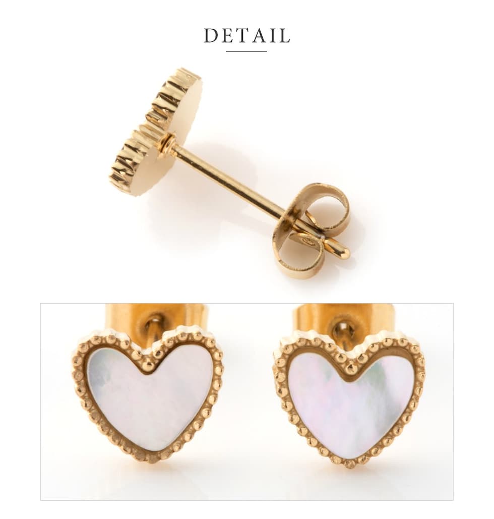 ハートモチーフの周りに、繊細なミル打ちを施したピアス。大人らしい甘さをプラスできる控えめなサイジングが◎錆びにくく傷に強いステンレス製で、長時間の着用も安心の低アレルギー素材です。
