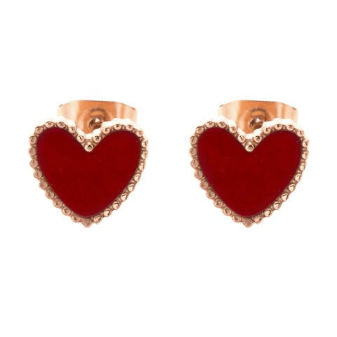 ピアス ステンレス 金属アレルギー サージカルステンレス レディース つけっぱなし ハート ミル打ち 小さめ スタッド レッド cream dot ゆうパケット [ピンクゴールド×レッド_ピアス]