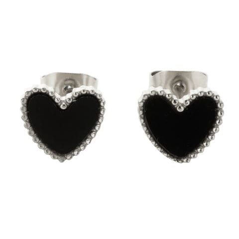 ピアス ステンレス 金属アレルギー サージカルステンレス レディース つけっぱなし ハート ミル打ち 小さめ スタッド レッド cream dot ゆうパケット [シルバー×ブラック_ピアス]