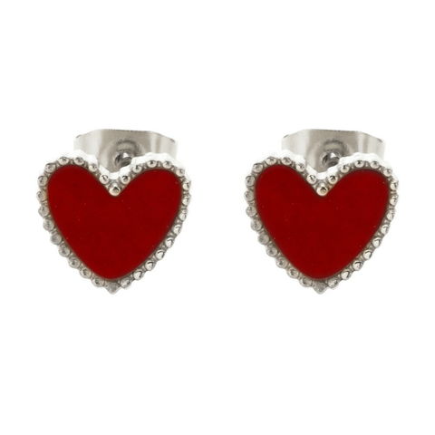 ピアス ステンレス 金属アレルギー サージカルステンレス レディース つけっぱなし ハート ミル打ち 小さめ スタッド レッド cream dot ゆうパケット [シルバー×レッド_ピアス]