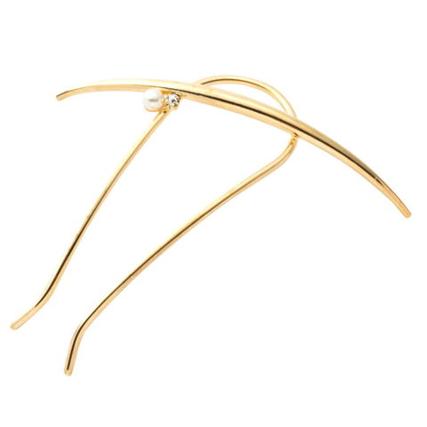 長めのクレセントバーに艶めくパールと小粒のビジューを配したメタルコーム。