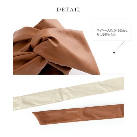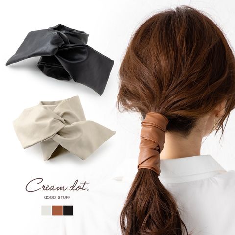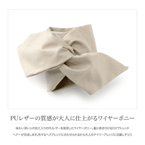 ヘアアクセサリー レディース ワイヤーポニー ヘアワイヤー アレンジワイヤー ヘアゴム リボン 巻き付け エコレザー シボ加工 ロング 太い puレザー フェイクレザー ブラック cream dot ゆうパケット [ブラック_ワンサイズ]
