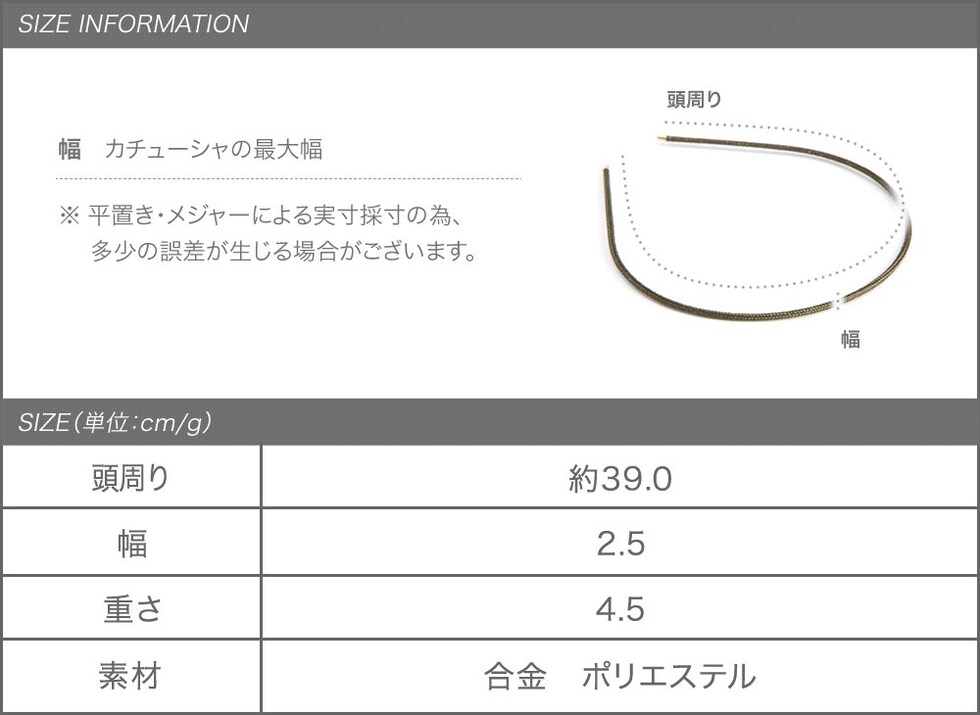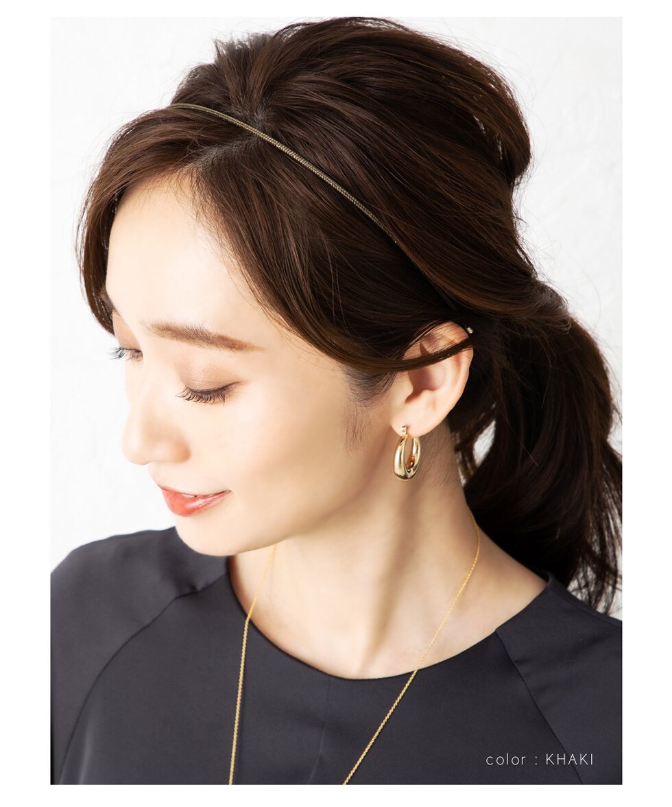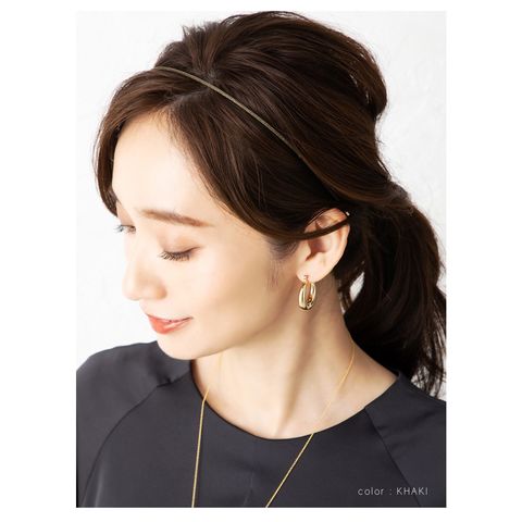 繊細に煌めくラメが編み込みされているスリムなデザインのカチューシャ。