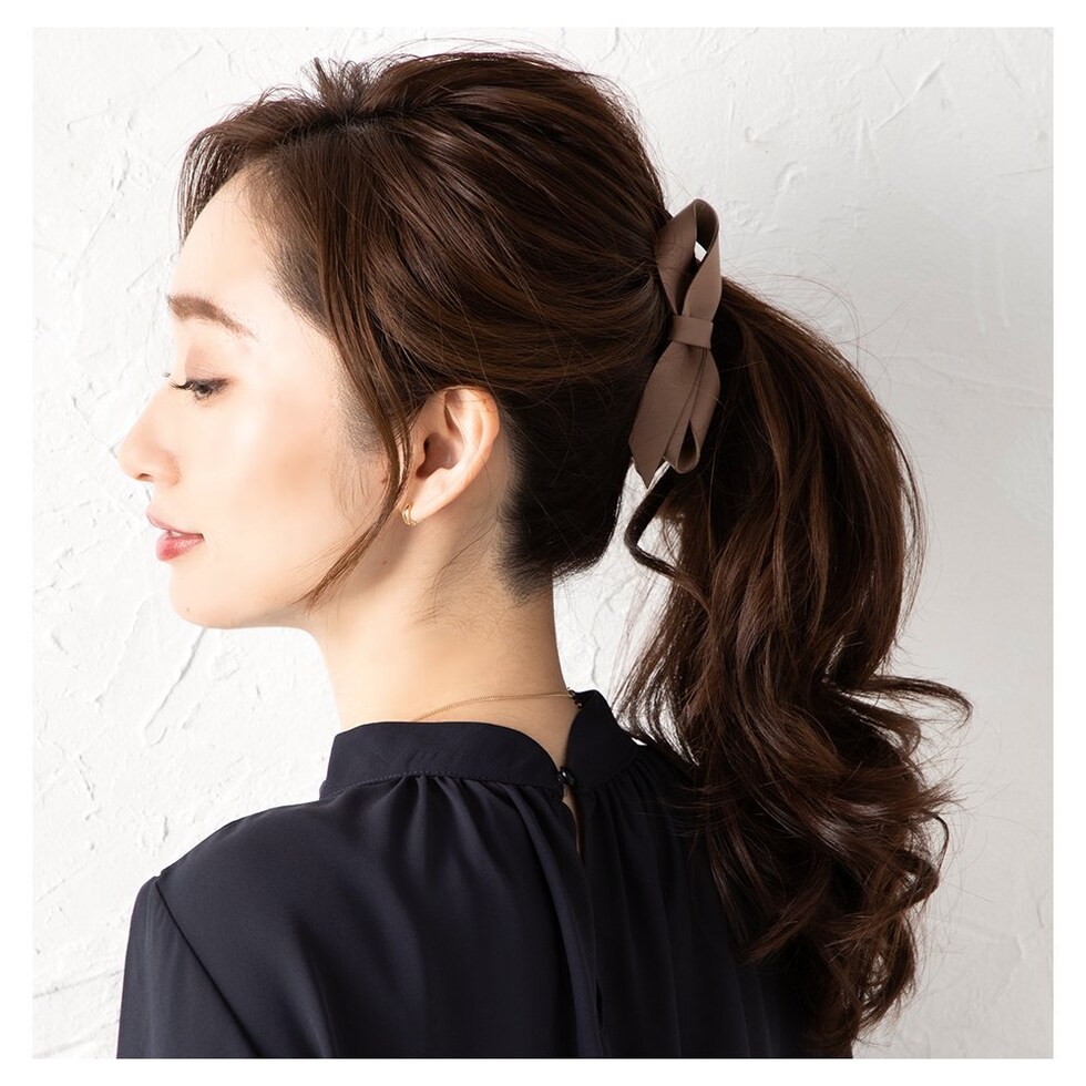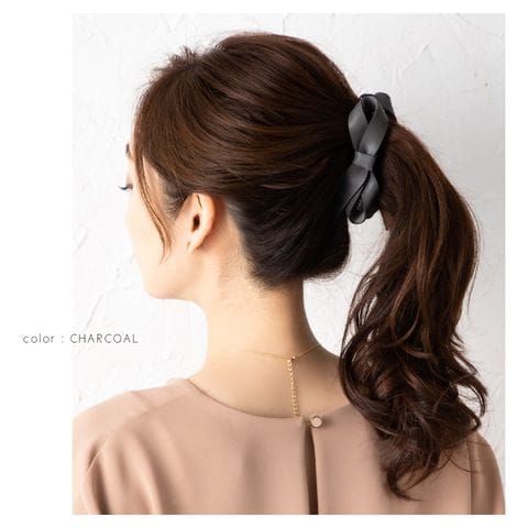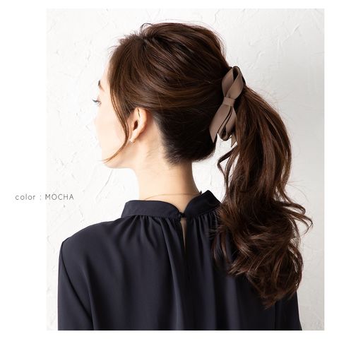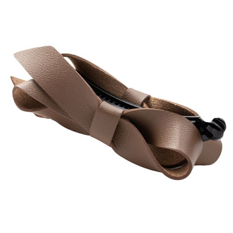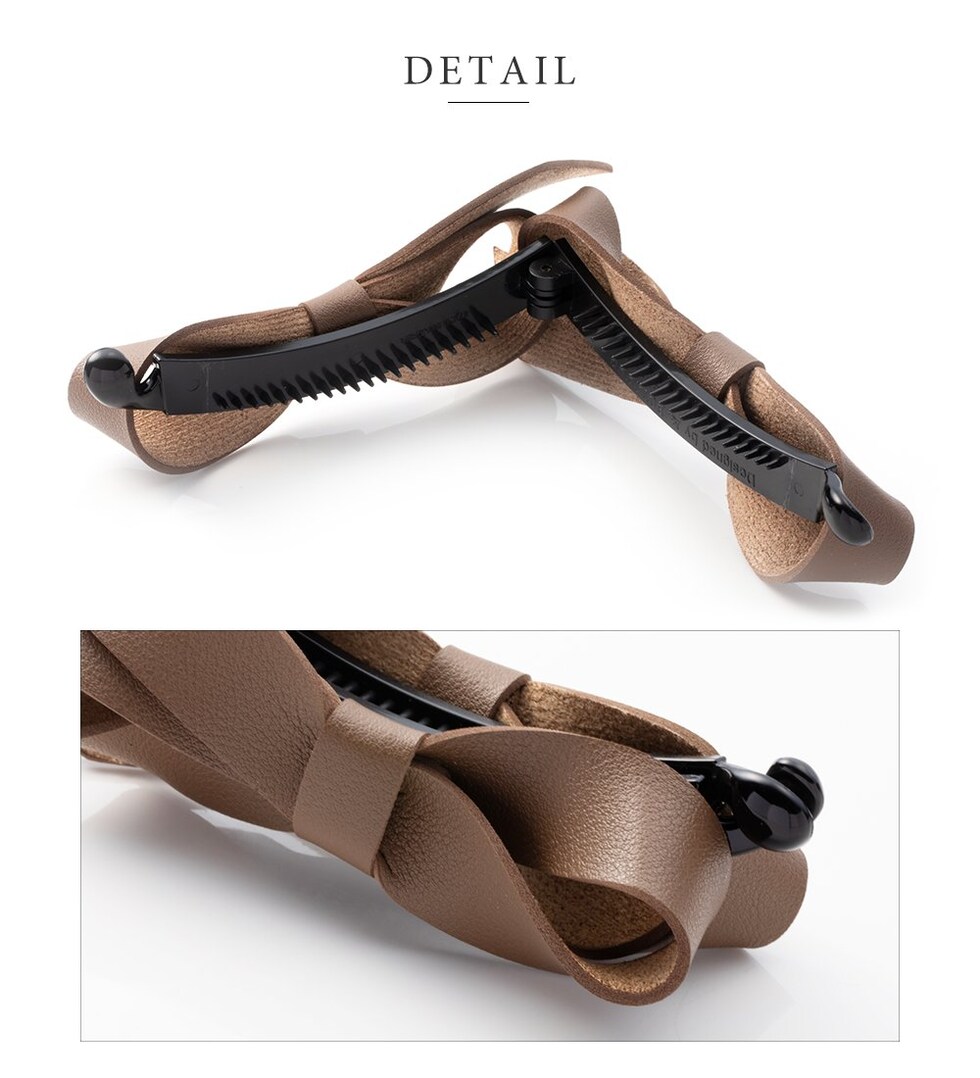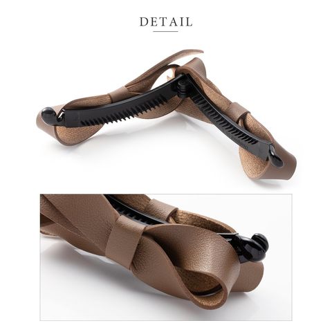 ヘアアクセサリー レディース バナナクリップ しっかり留まる リボン エコレザー ヘアクリップ フェイクレザー puレザー 合皮 黒 cream dot ゆうパケット [モカ_ワンサイズ]