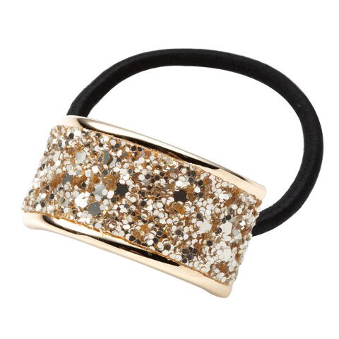 ラメグリッターが光を受けてに上品にきらめくカーブヘアゴム。