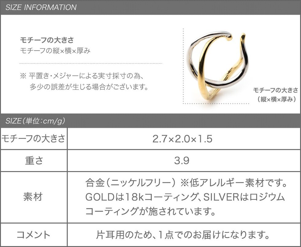 流れるような柔らかい曲線が美しいレイヤード風イヤーカフ。