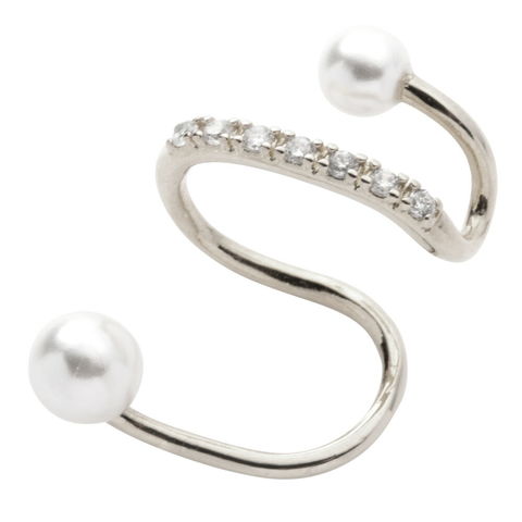 イヤーカフ レディース イヤーカフ イヤカフ 片耳用 メタル キュービックジルコニア ビジュー パール 変形 cream dot ゆうパケット [A:シルバー_フリーサイズ]