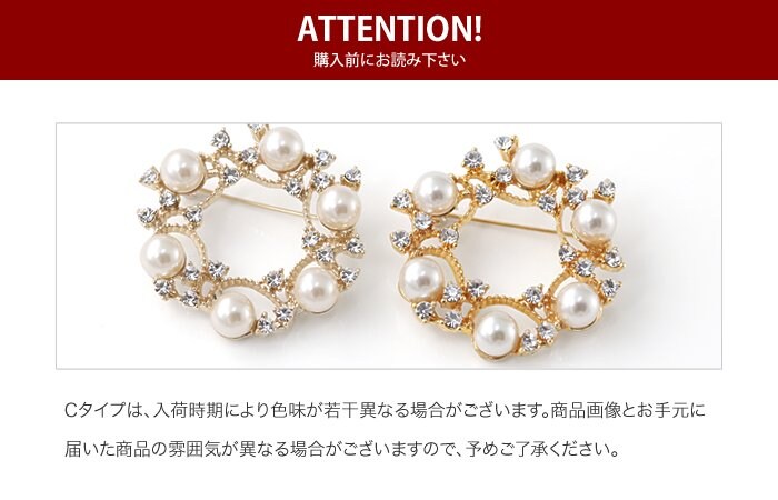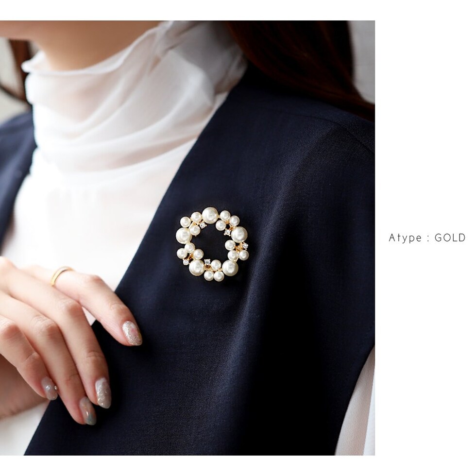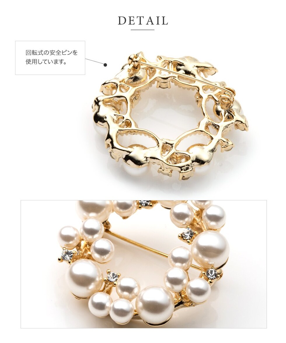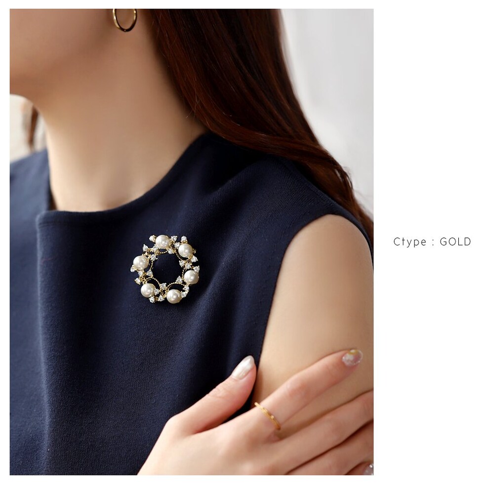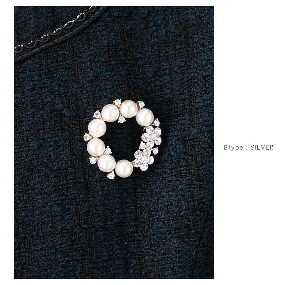 ビジューとパールをあしらった、大人っぽくて上品なデザインのラウンド型ブローチを3種類ご用意しました。
