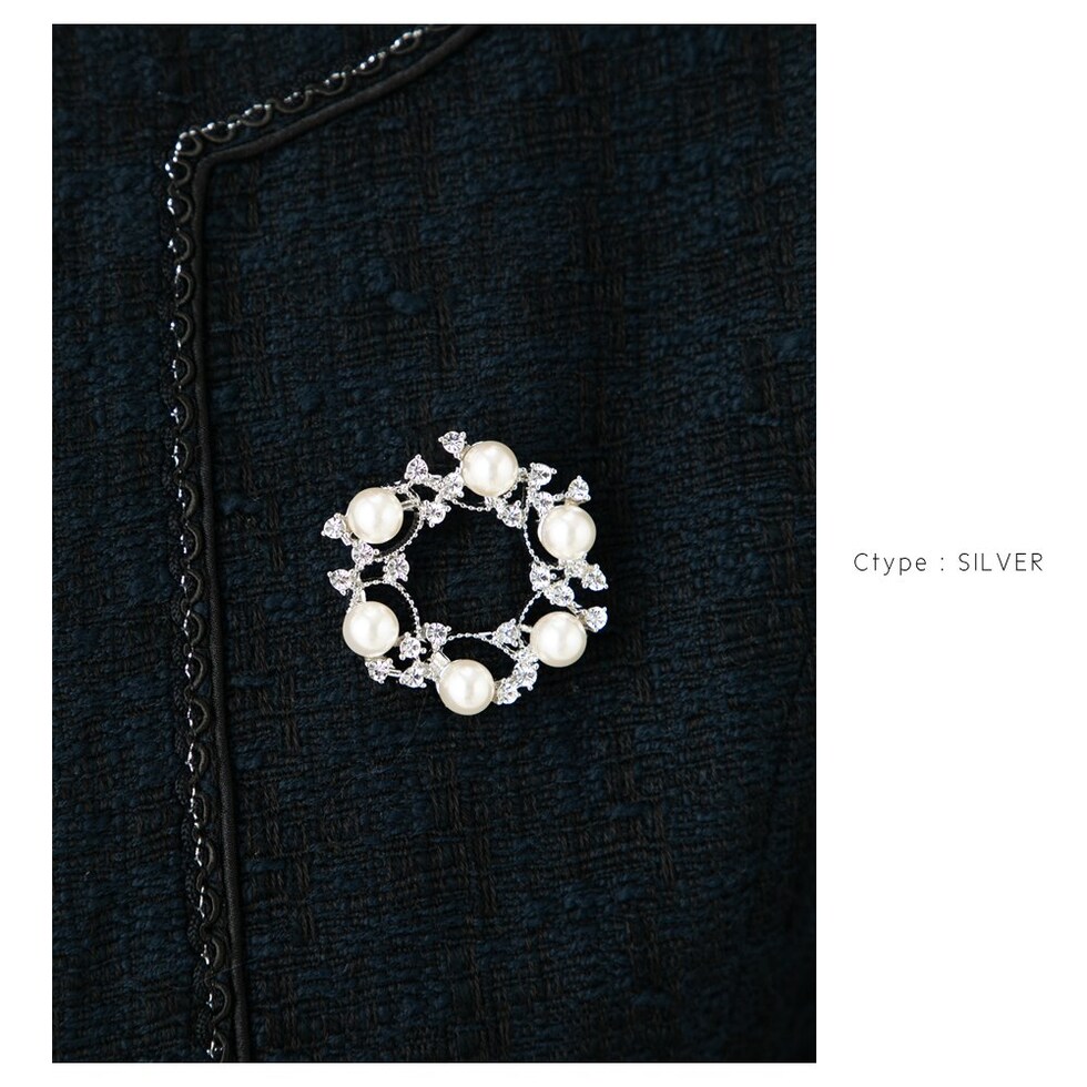 3タイプ ブローチ フォーマル 卒業式 卒園式 入学式 入園式 セレモニー ママスーツ パール キュービックジルコニア ピン ラウンド型 cream dot ゆうパケット [B:シルバー_ワンサイズ]