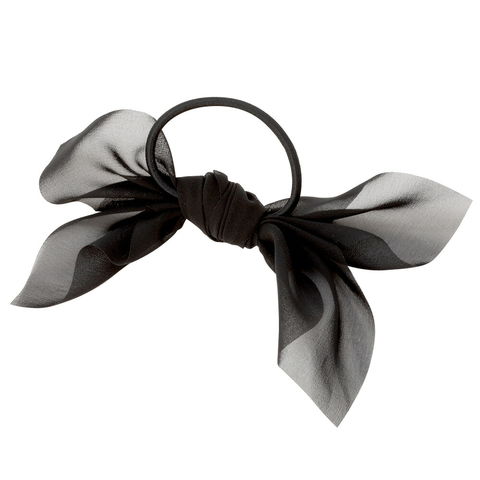 透け感のあるシフォン生地をキュッと結んでリボンにしたヘアゴム。