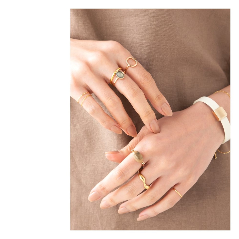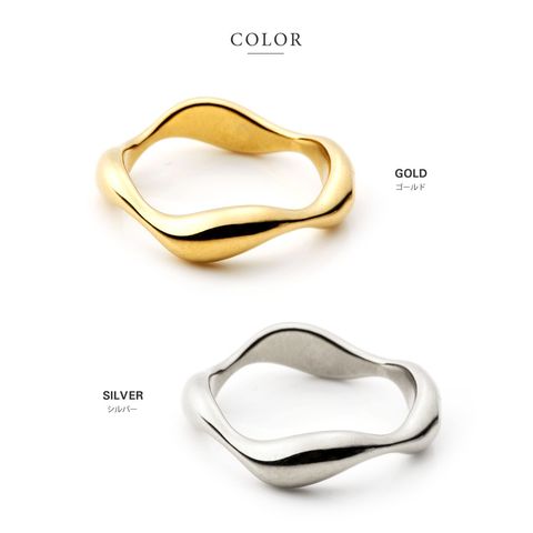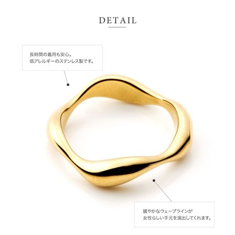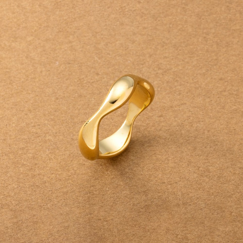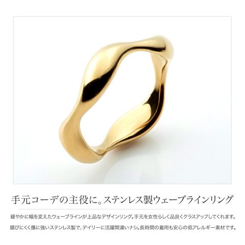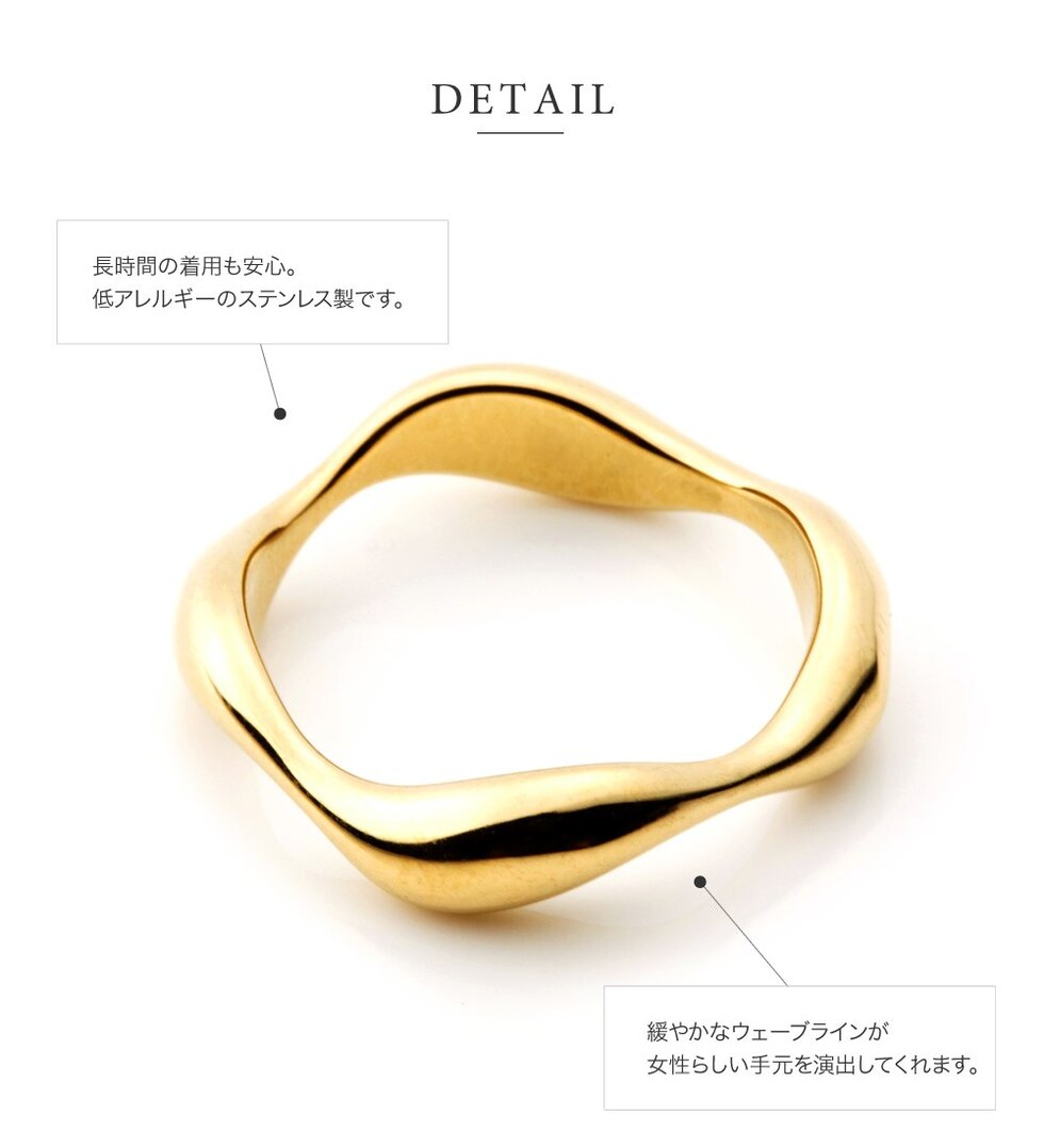 緩やかに幅を変えたウェーブラインが上品なデザインリング。