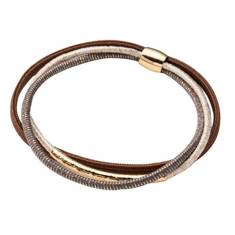ヘアアクセサリー レディース ヘアゴム ラメ メタルバー 3連 たたき加工 パイプメタル カーキ cream dot ゆうパケット [ブラウン_ワンサイズ]