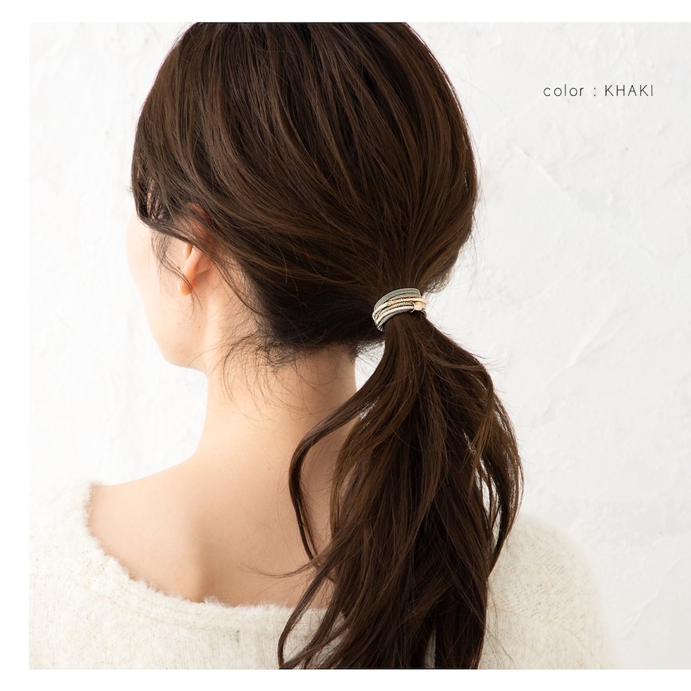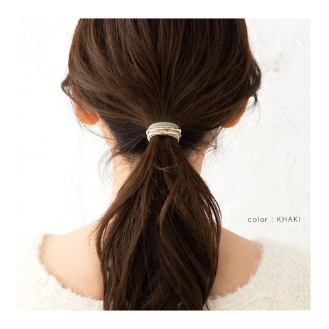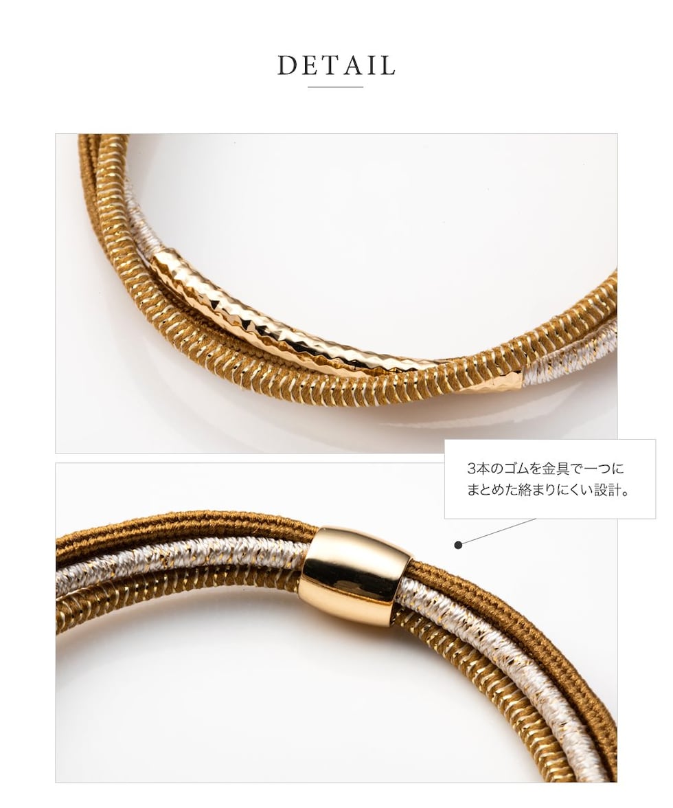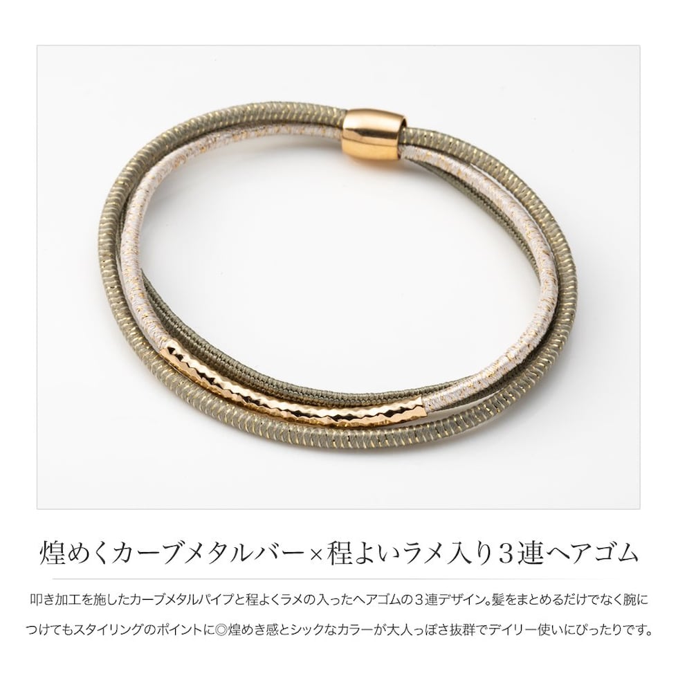 ヘアアクセサリー レディース ヘアゴム ラメ メタルバー 3連 たたき加工 パイプメタル カーキ cream dot ゆうパケット [カーキ_ワンサイズ]