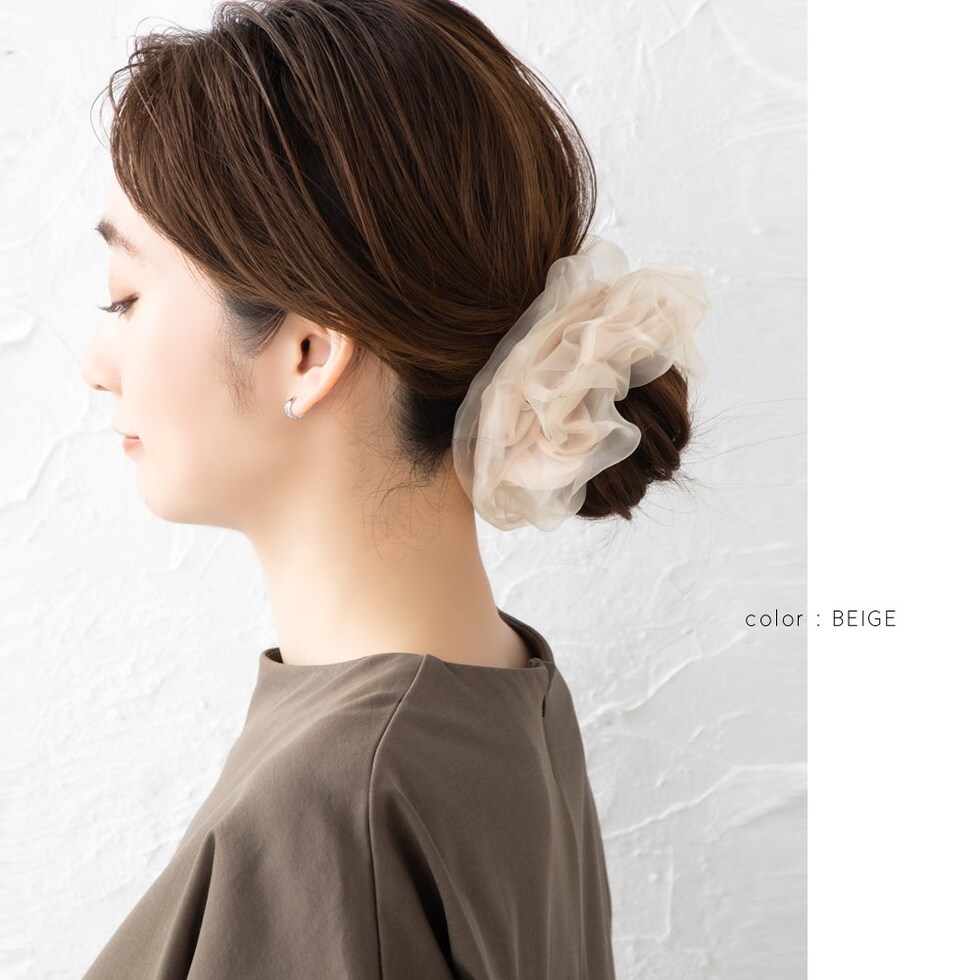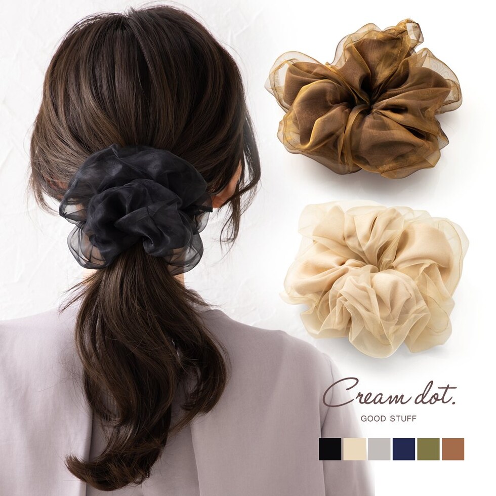 ヘアアクセサリー レディース シュシュ ボリューム 大きめ オーガンジー素材 サテン調 ビッグシュシュ キャメル cream dot ゆうパケット [ベージュ_ワンサイズ]