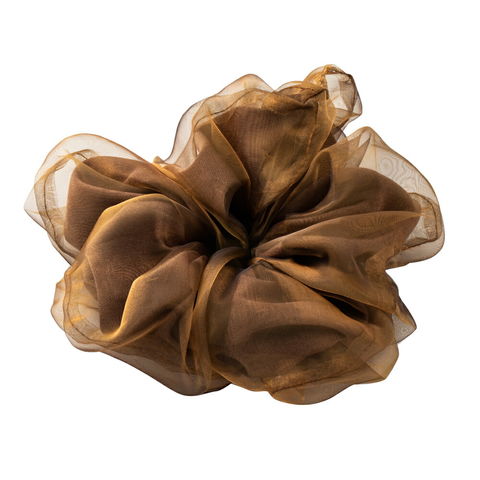 光沢感のあるサテン調生地にオーガンジーをレイヤードしたシュシュ。