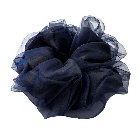 光沢感のあるサテン調生地にオーガンジーをレイヤードしたシュシュ。