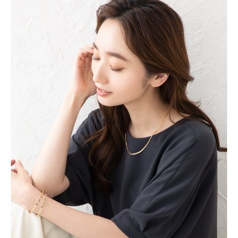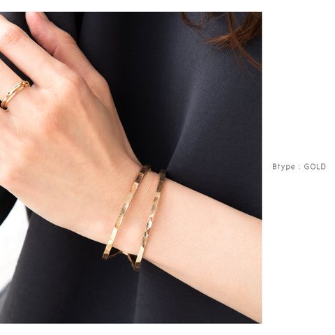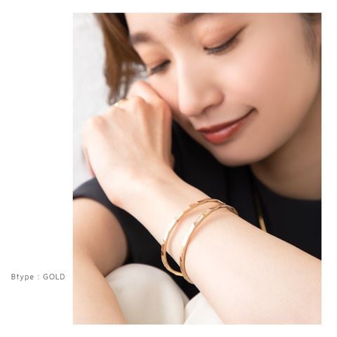 くすみを加えたマットな質感のヴィンテージ調素材が高見えするアシンメトリーオープンバングル。