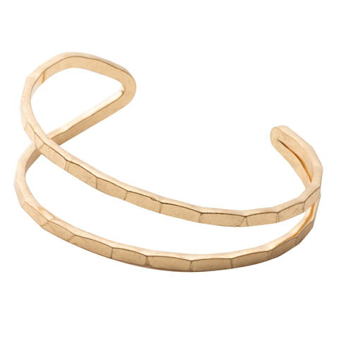 くすみを加えたマットな質感のヴィンテージ調素材が高見えするアシンメトリーオープンバングル。