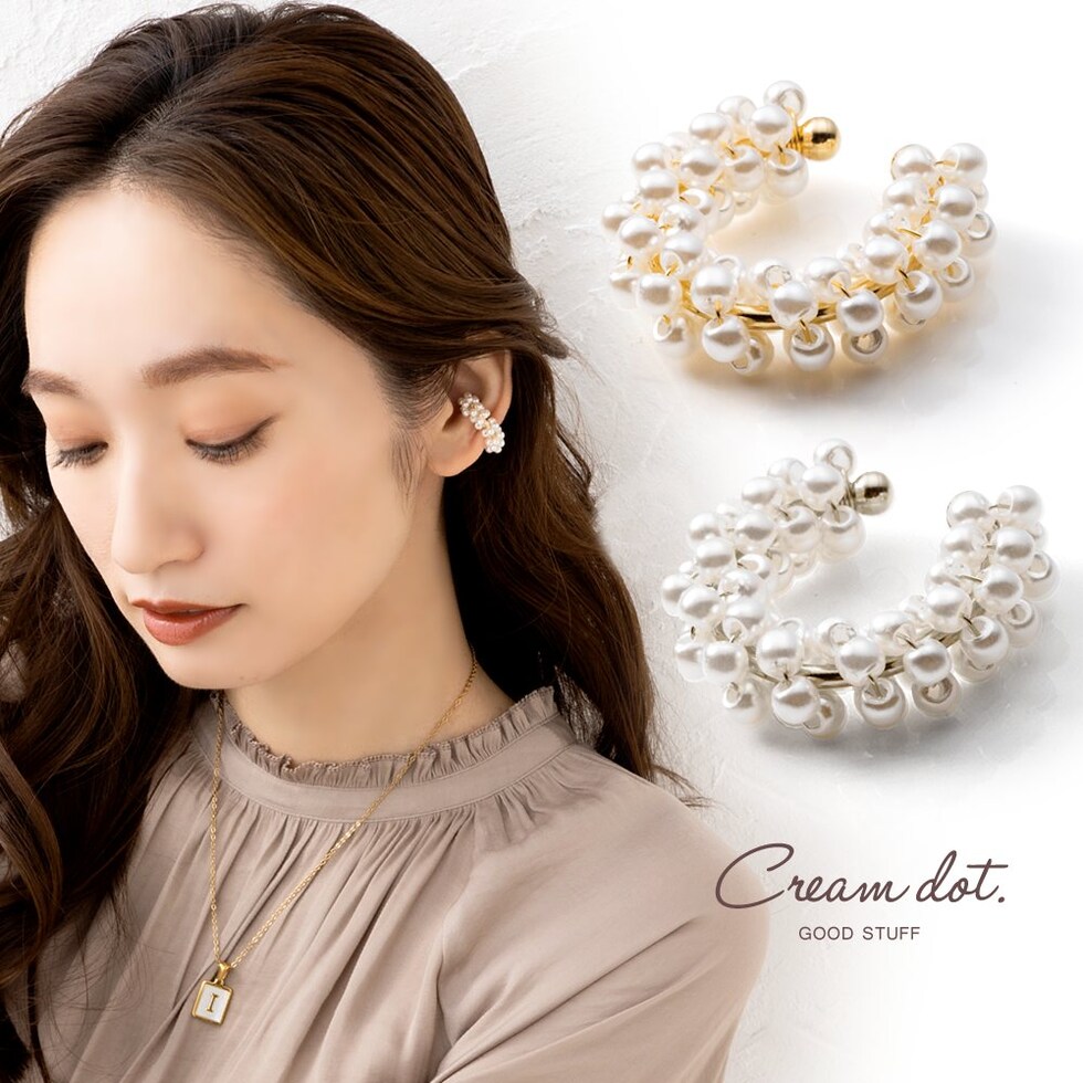 イヤーカフ レディース イヤーカフ イヤカフ 片耳用 大ぶり パールビーズ cream dot ゆうパケット [ゴールド_フリーサイズ]