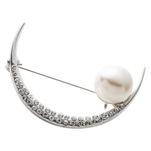 ブローチ フォーマル 卒業式 卒園式 入学式 入園式 ママスーツ コサージュ ピン 月 ムーン パール ビジュー cream dot ゆうパケット [シルバー_ワンサイズ]
