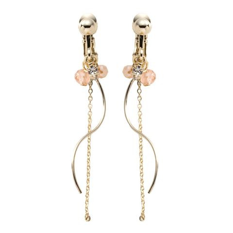 多面カットカラービーズのラインピアス/イヤリング。落ち着きあるカラーと、重なりあったチェーンとウェーブが柔らかな女性らしい雰囲気に仕上げてくれます。派手になりすぎない長さだからデイリー使いにもオススメ◎