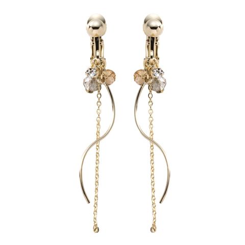 多面カットカラービーズのラインピアス/イヤリング。落ち着きあるカラーと、重なりあったチェーンとウェーブが柔らかな女性らしい雰囲気に仕上げてくれます。派手になりすぎない長さだからデイリー使いにもオススメ◎