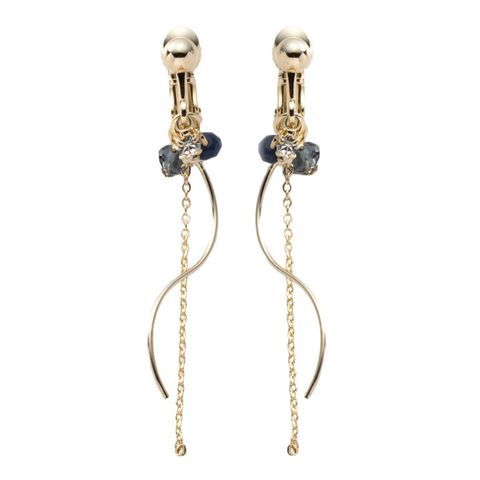 多面カットカラービーズのラインピアス/イヤリング。落ち着きあるカラーと、重なりあったチェーンとウェーブが柔らかな女性らしい雰囲気に仕上げてくれます。派手になりすぎない長さだからデイリー使いにもオススメ◎