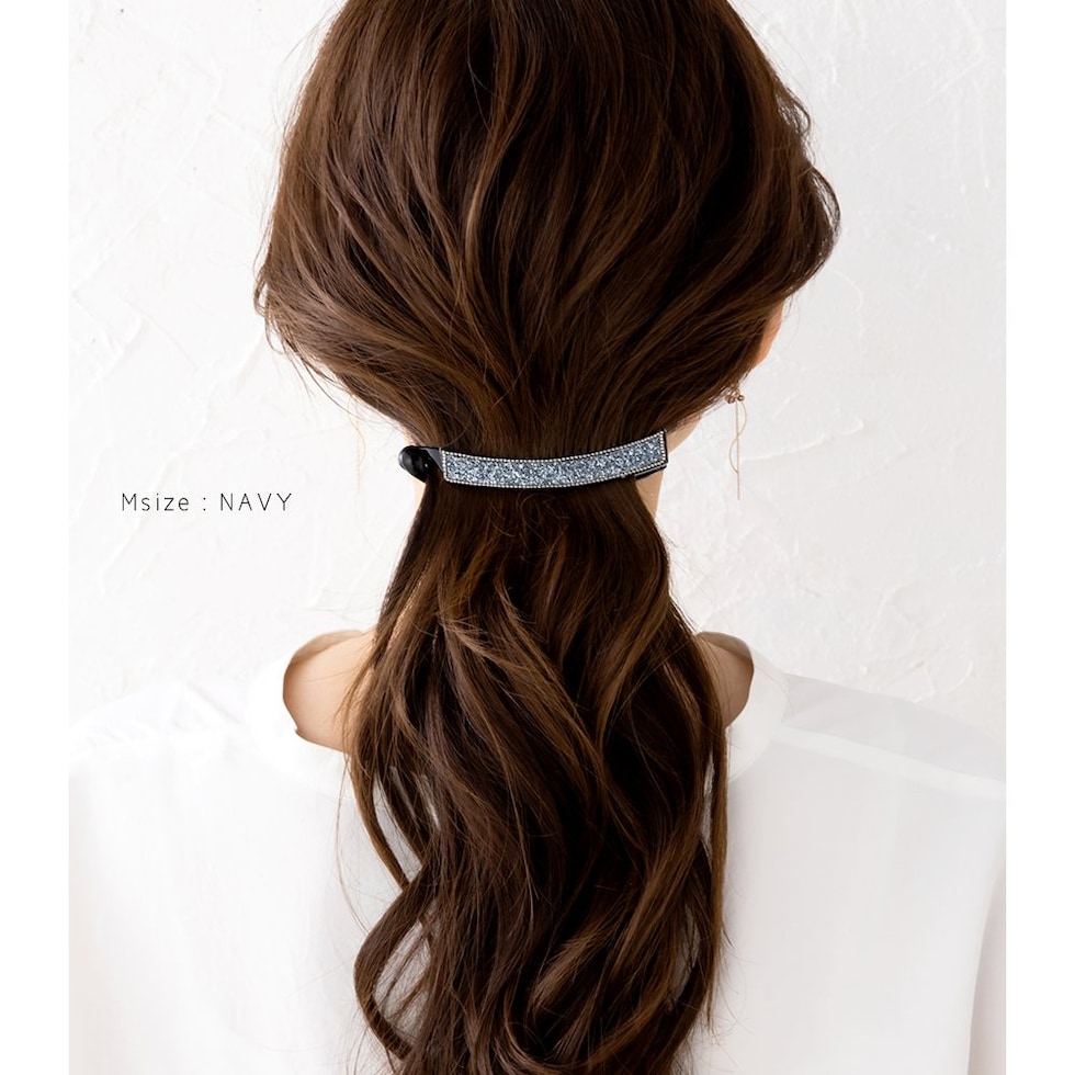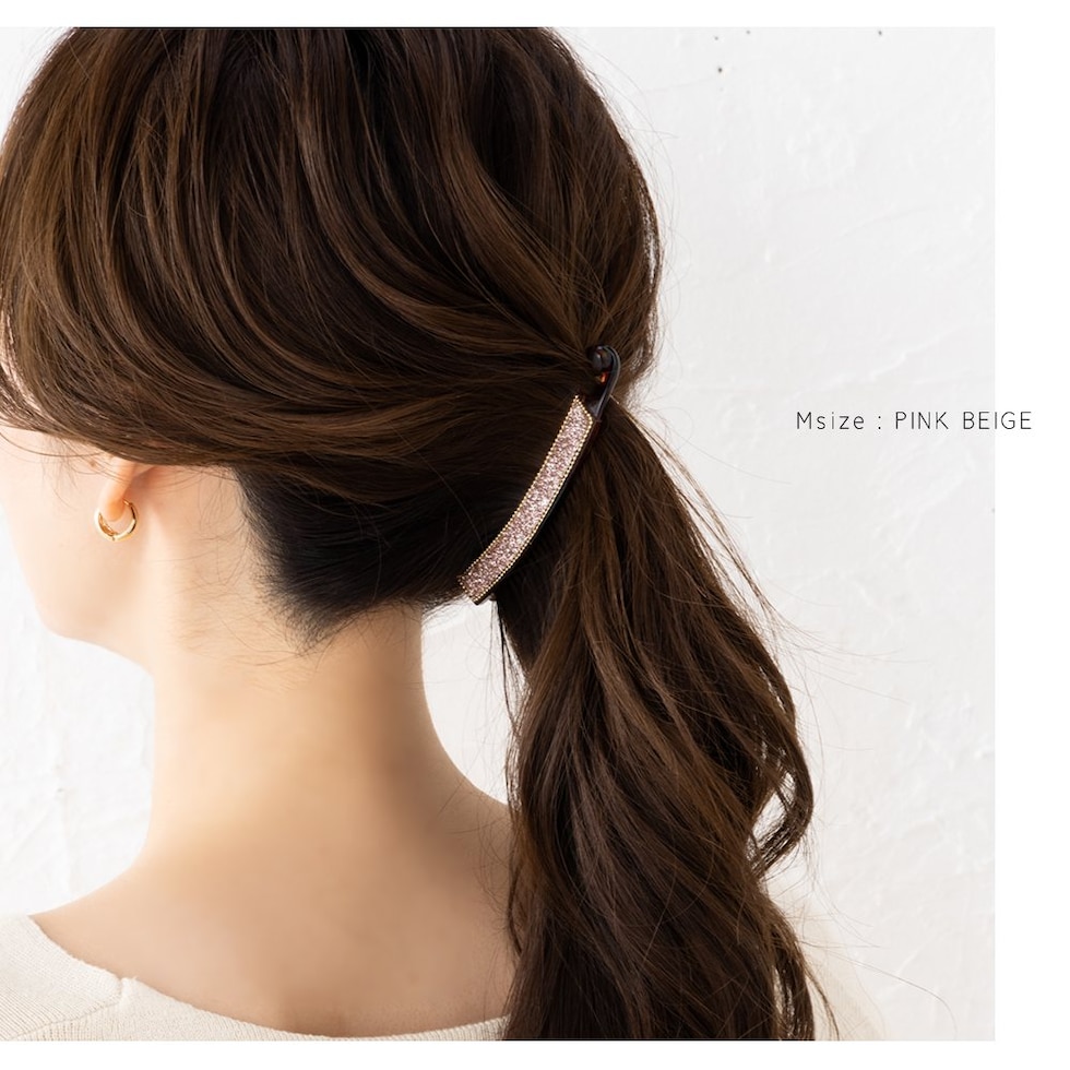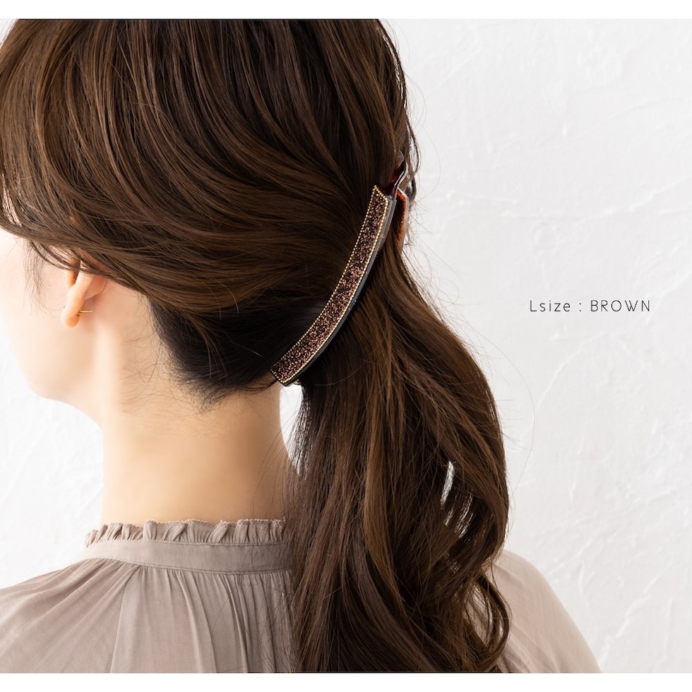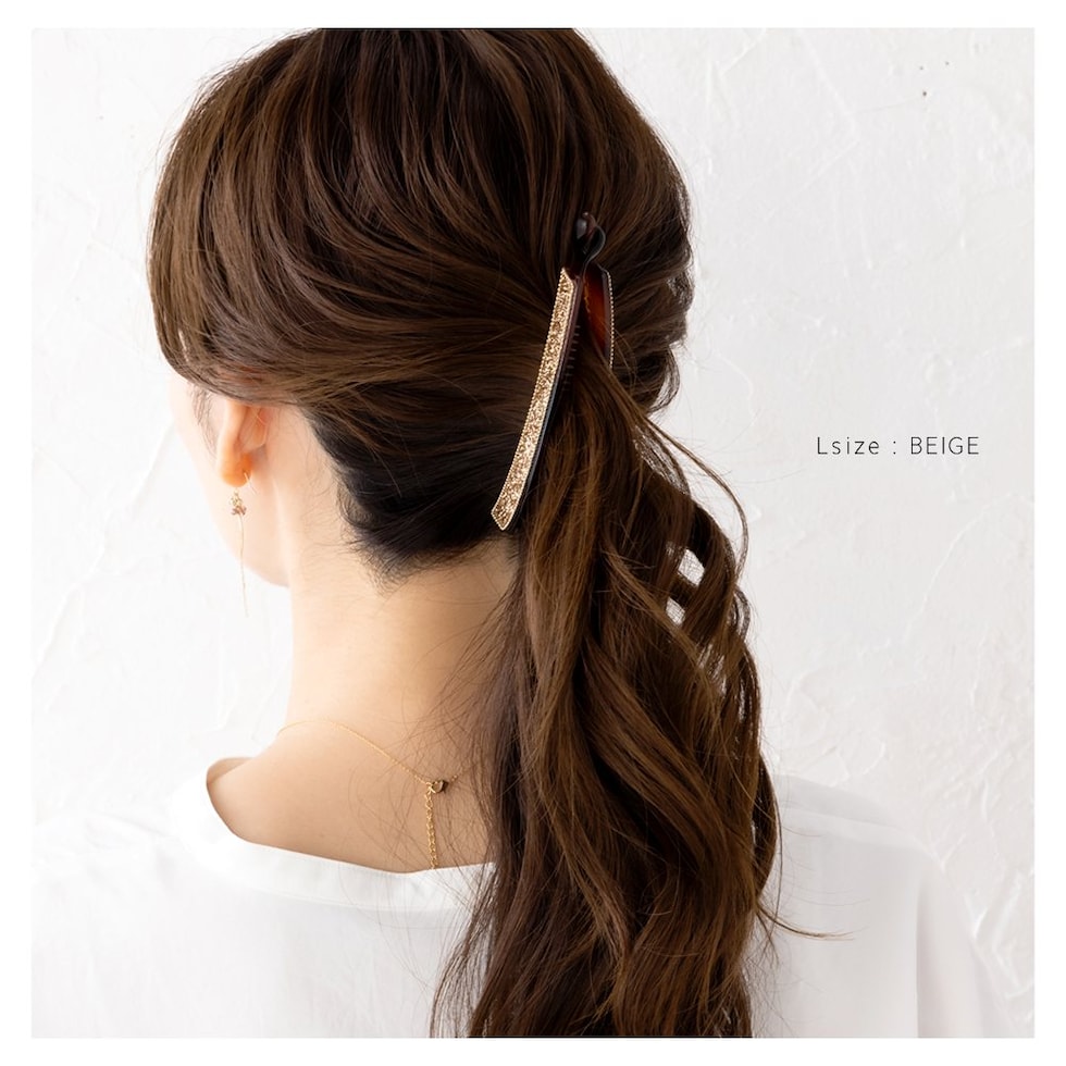 グリッターラメとミル打ちデザインがキラキラと煌めくバナナクリップ。いつものヘアスタイルにプラスするだけで華やかに仕上がるアイテムです。お好みに合わせて2サイズからお選び頂けます。