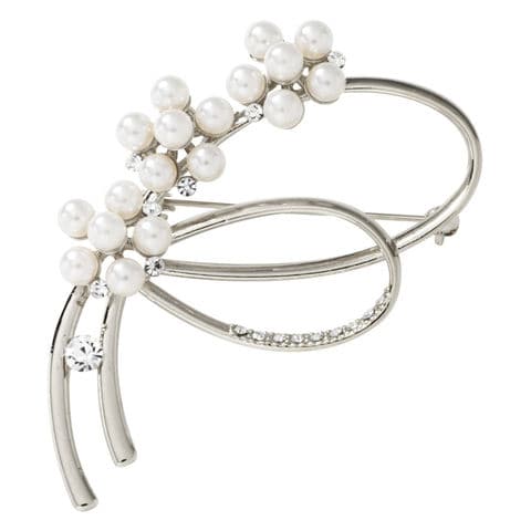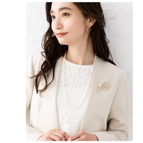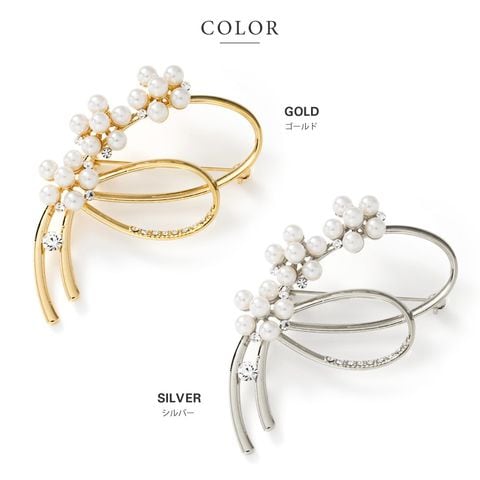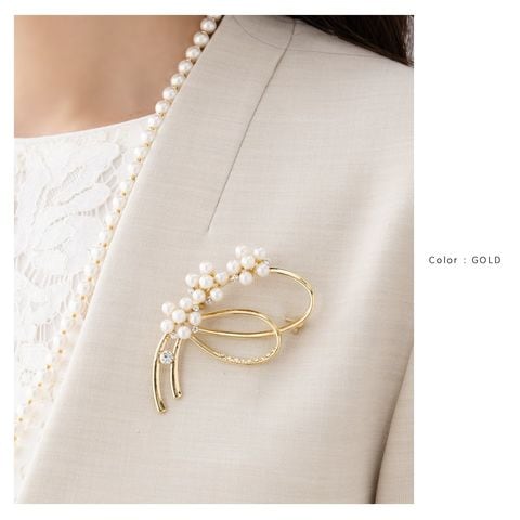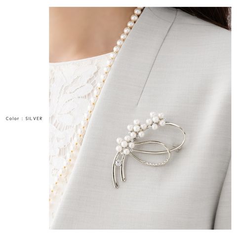 ビジューとパールを贅沢にあしらったラインブローチ。小ぶりなパールが艶めいて胸元を華やかに演出します。スタイリングの邪魔にならないシンプルなデザインでオトナの品格をプラス。