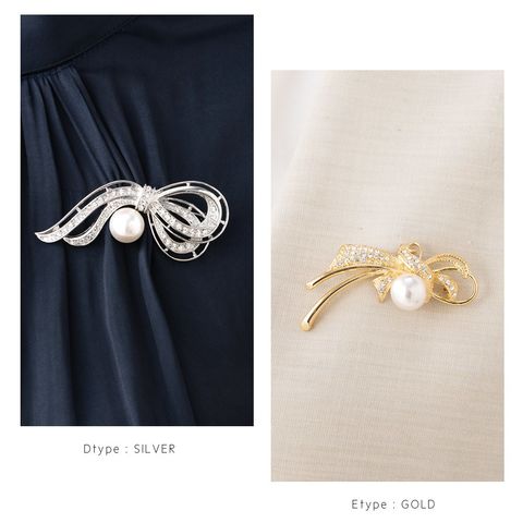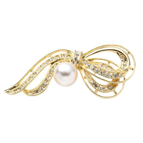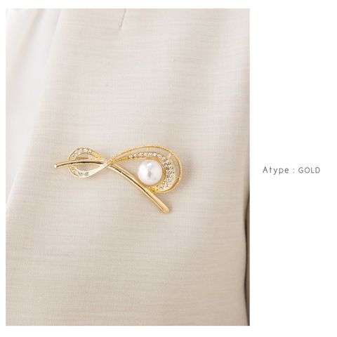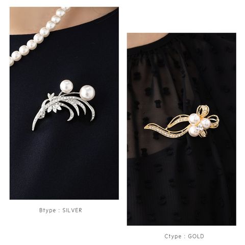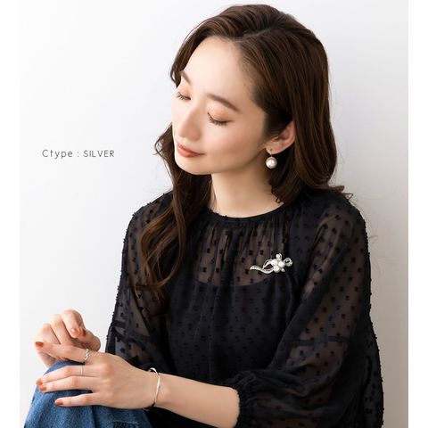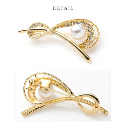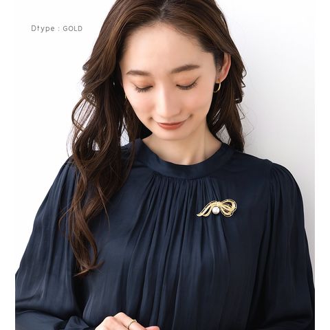 パールやビジューを贅沢に飾ったブローチ。緩やかな曲線が大人っぽい上品デザインでジャケットやドレスに合わせやすいアイテムです。お祝いシーンなど華やかな装いのワンポイント使いにオススメ。