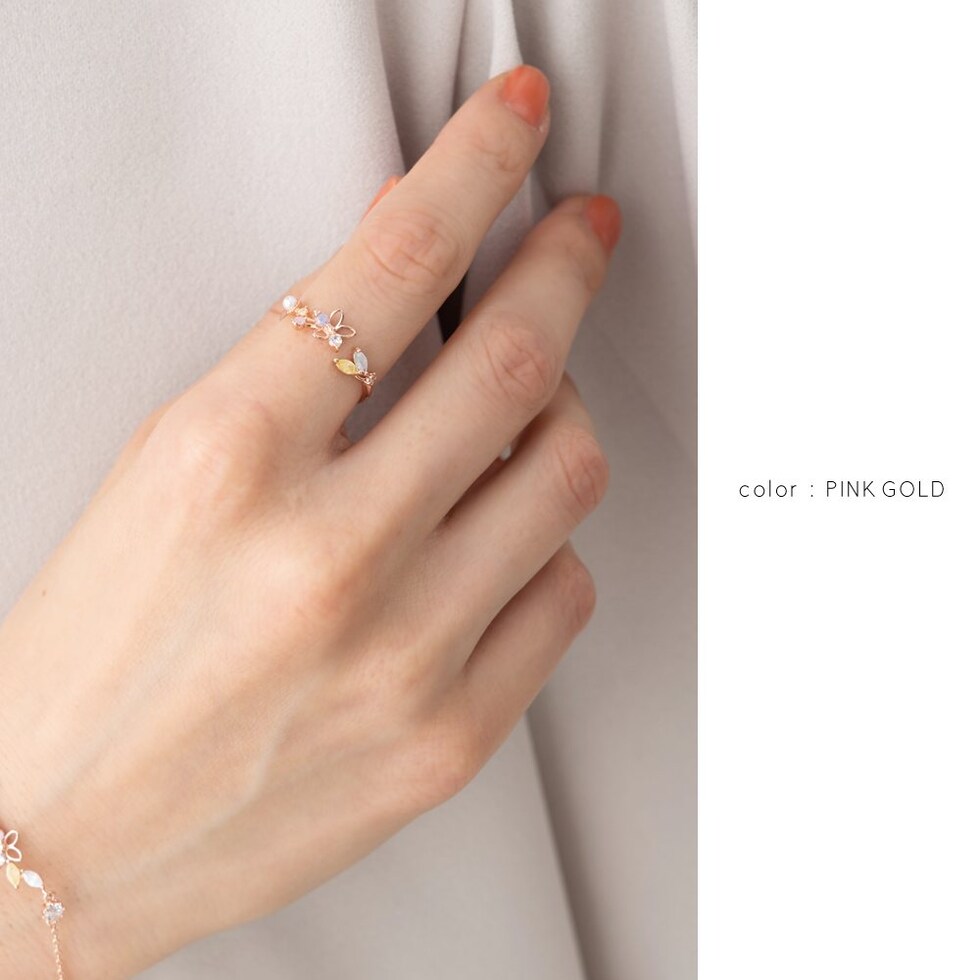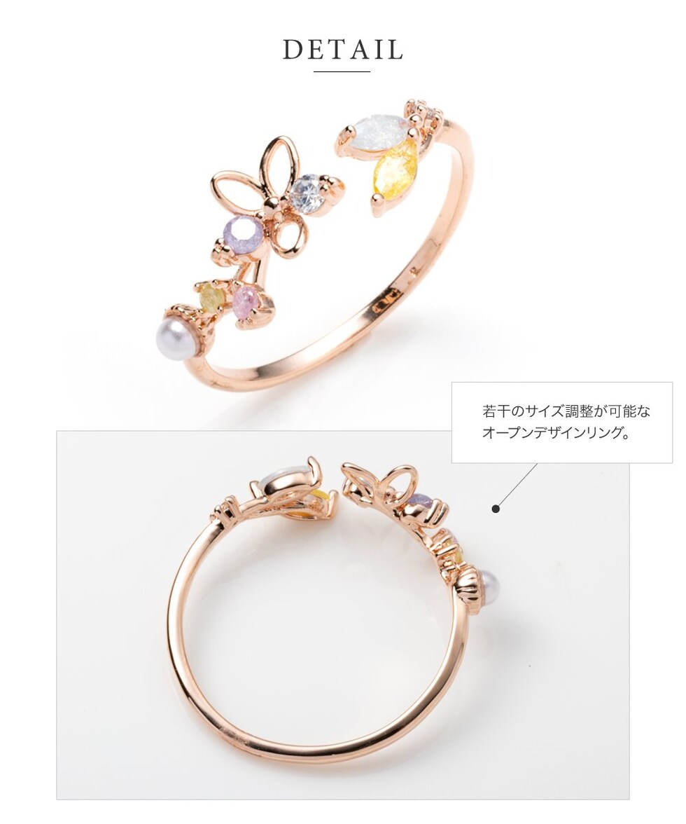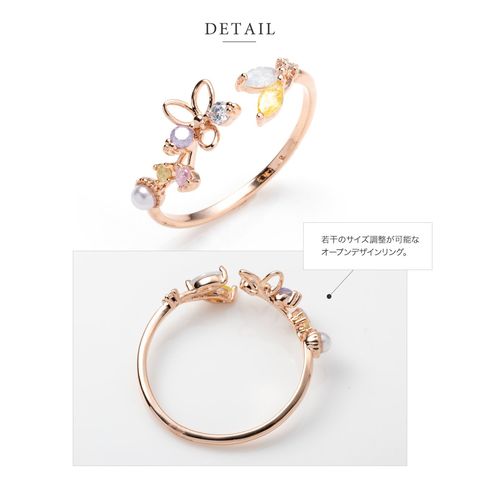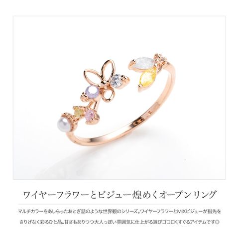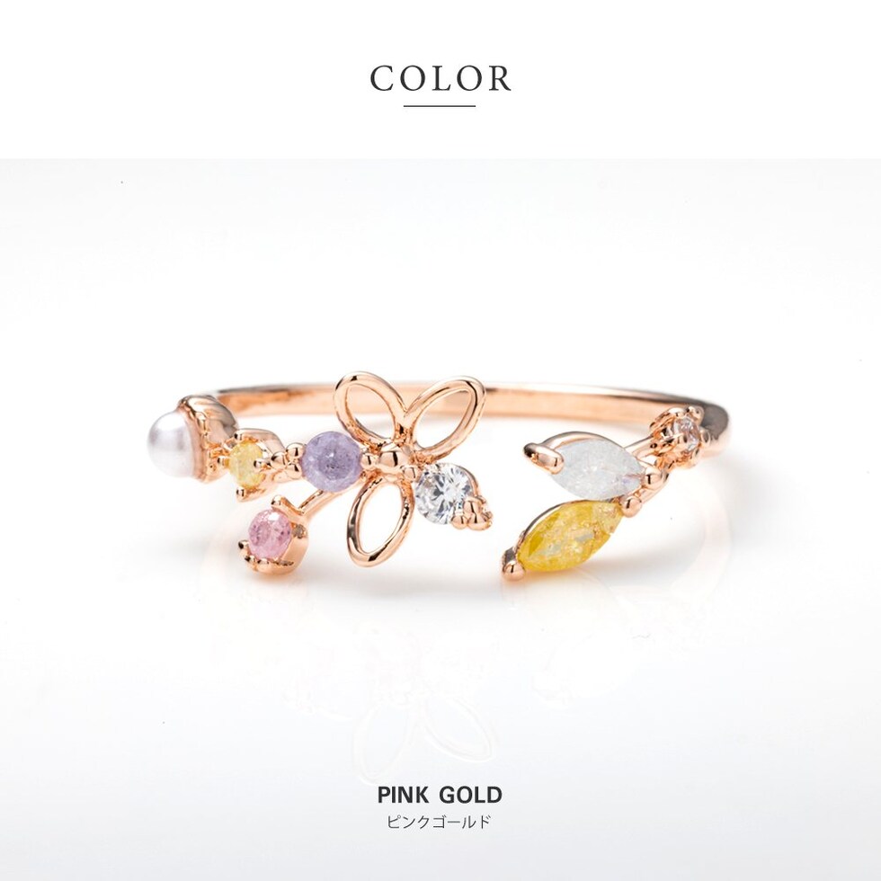 リング 指輪 レディース キュービックジルコニア ビジュー フラワー オープンリング マルチカラー メルヘンチック cream dot ゆうパケット [ピンクゴールド_フリーサイズ]