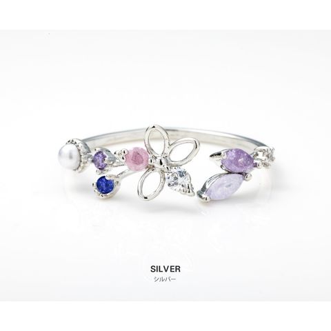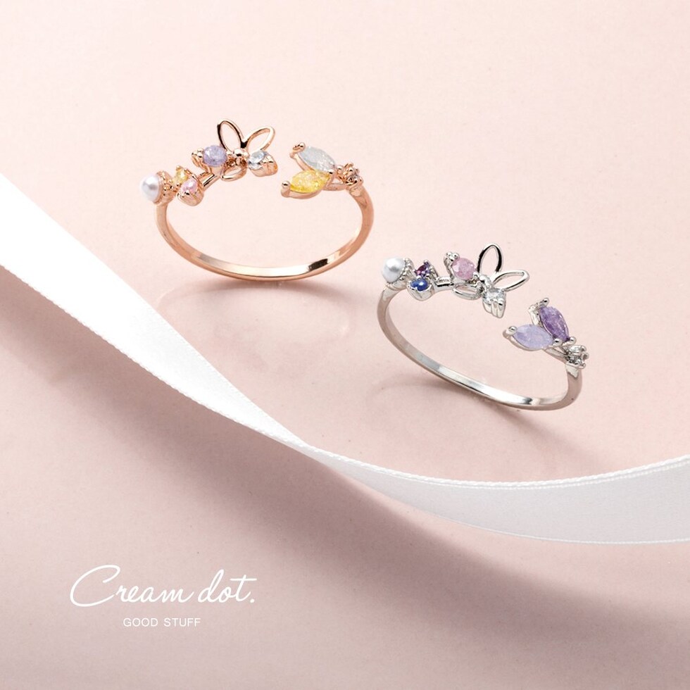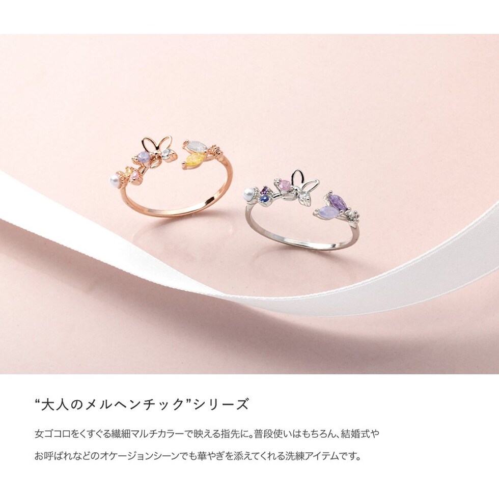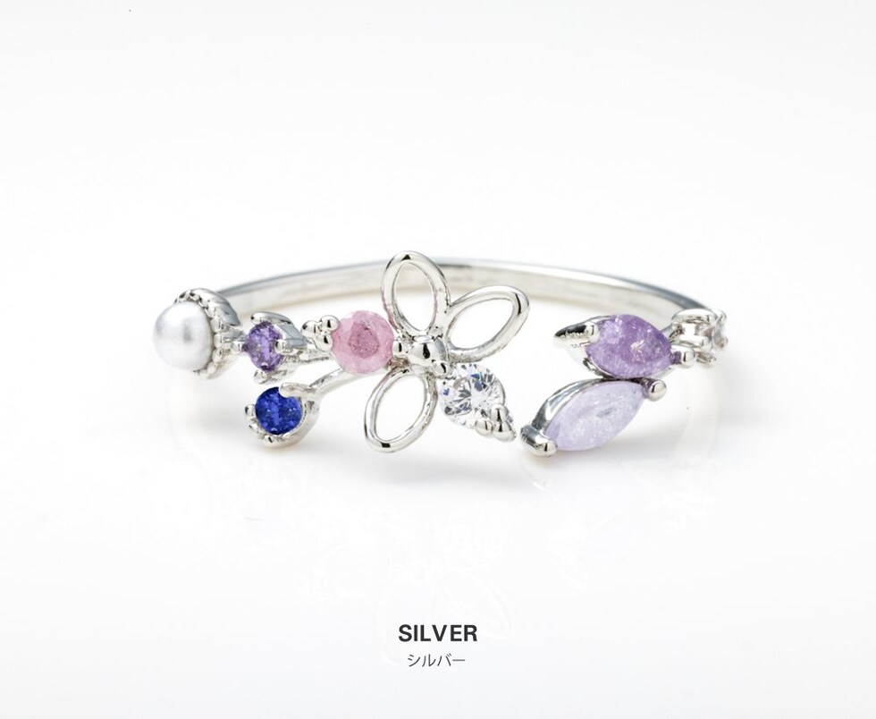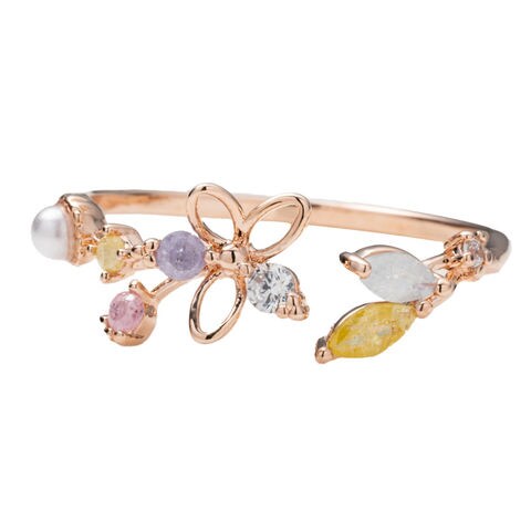 リング 指輪 レディース キュービックジルコニア ビジュー フラワー オープンリング マルチカラー メルヘンチック cream dot ゆうパケット [ピンクゴールド_フリーサイズ]