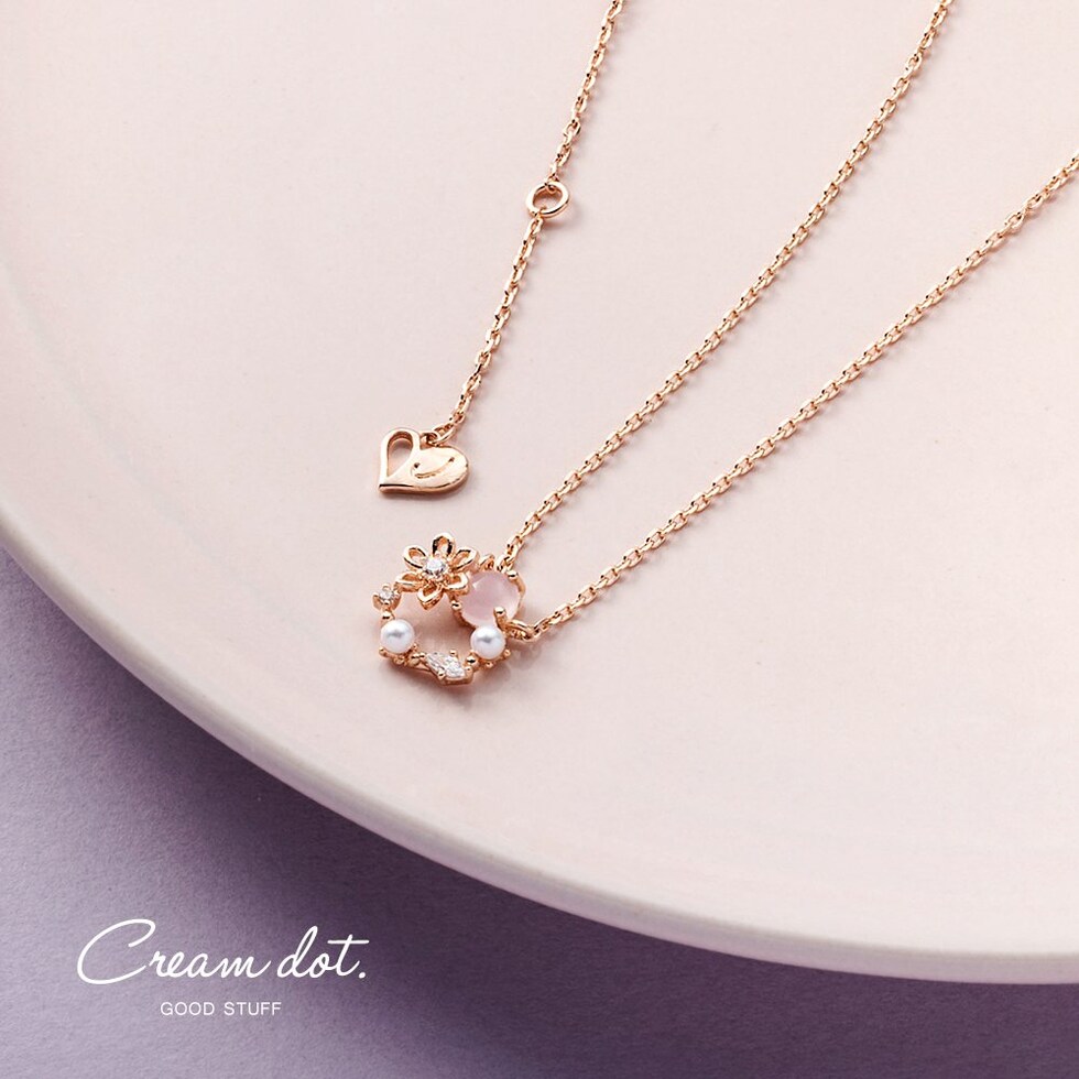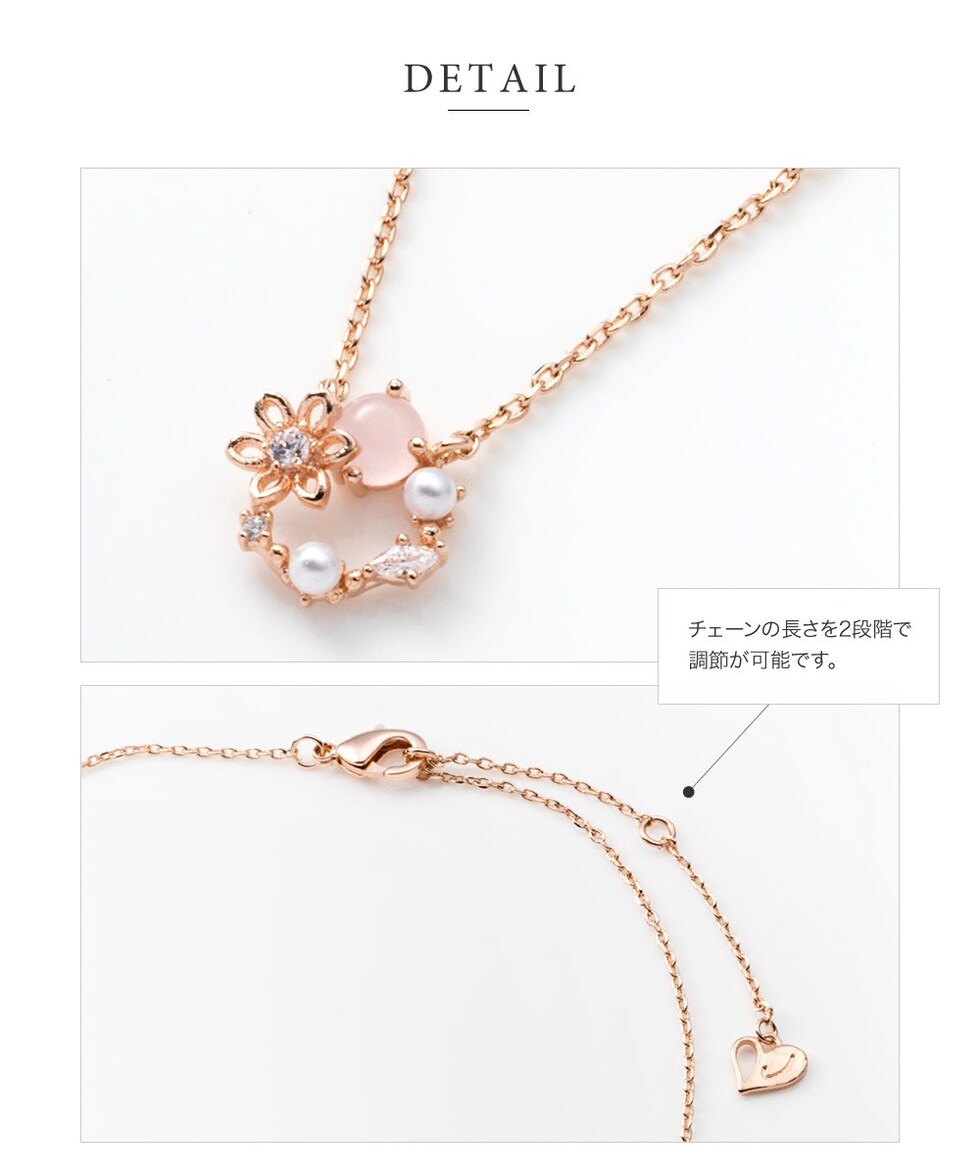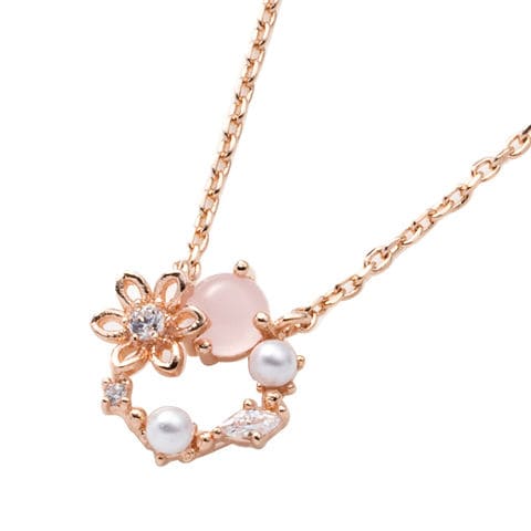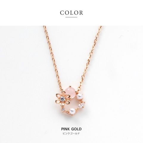 ネックレス レディース ショート チェーン キュービックジルコニア ビジュー フラワー パール サークル マルチカラー メルヘンチック cream dot ゆうパケット [ピンクゴールド_ワンサイズ]