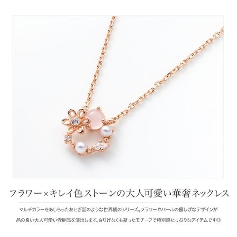女ゴコロをくすぐる繊細マルチカラーで映える首元に。普段使いはもちろん、結婚式やお呼ばれなどのオケージョンシーンでも華やぎを添えてくれる洗練アイテムです。