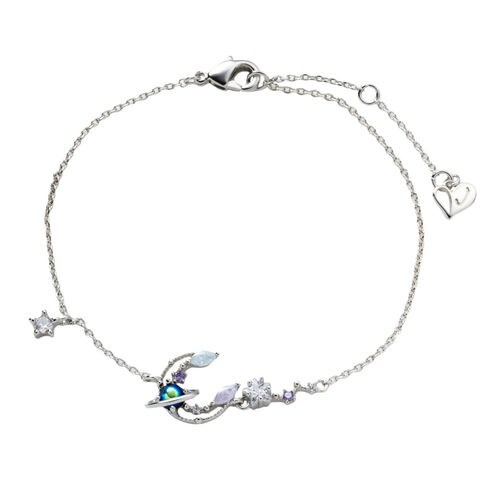 ブレスレット レディース チェーン キュービックジルコニア ビジュー 月 土星 アストロ マルチカラー メルヘンチック cream dot ゆうパケット [シルバー_ワンサイズ]