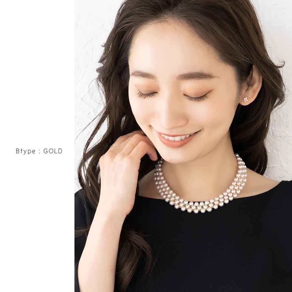 ネックレス レディース チョーカー ショート パール 2タイプ ワイヤー 2連 3連 2列 3列 cream dot ゆうパケット [A:ゴールド_ワンサイズ]