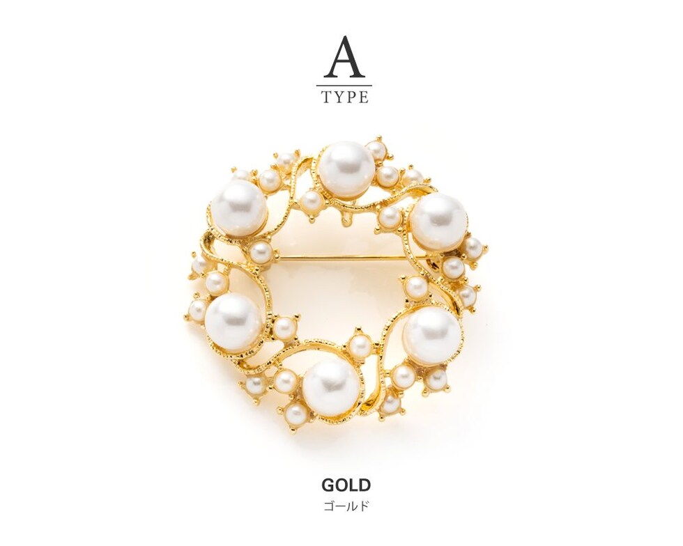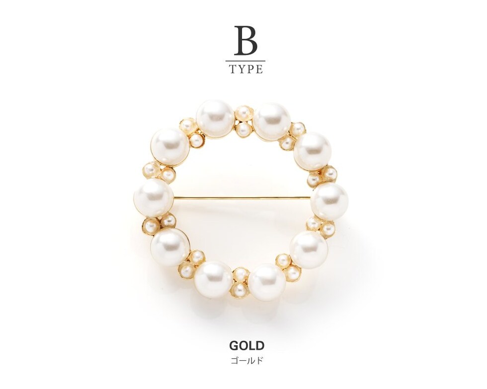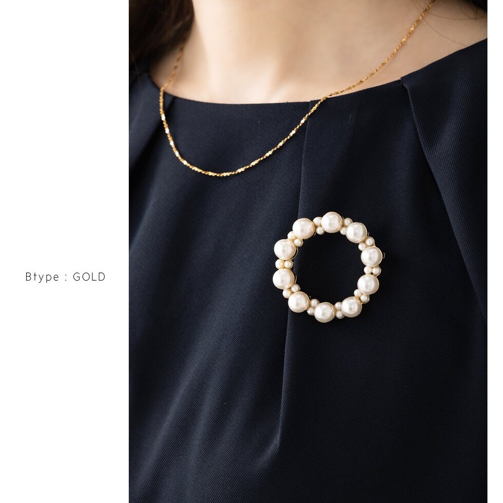 ブローチ フォーマル 卒業式 卒園式 入学式 入園式 ママスーツ コサージュ ピン パール サークル 円形 2タイプ cream dot ゆうパケット [B:ゴールド_ワンサイズ]