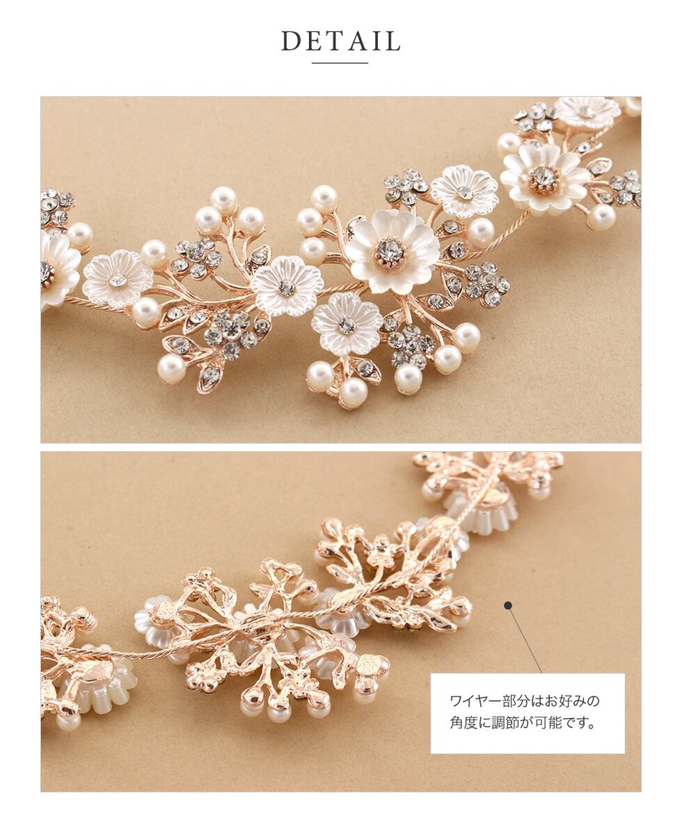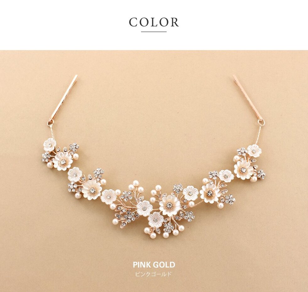 ヘアアクセサリー レディース ヘッドドレス ヘアピン バックカチューシャ 小枝 ヘッドアクセサリー まとめ髪 髪飾り 花飾り 花冠 フラワー パール cream dot ゆうパケット [ピンクゴールド_ワンサイズ]