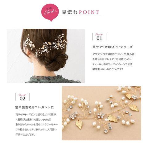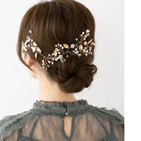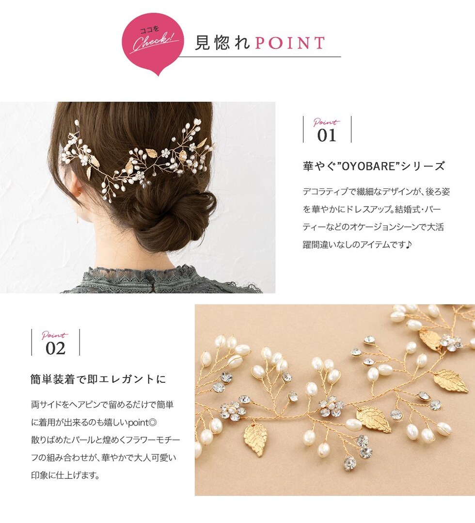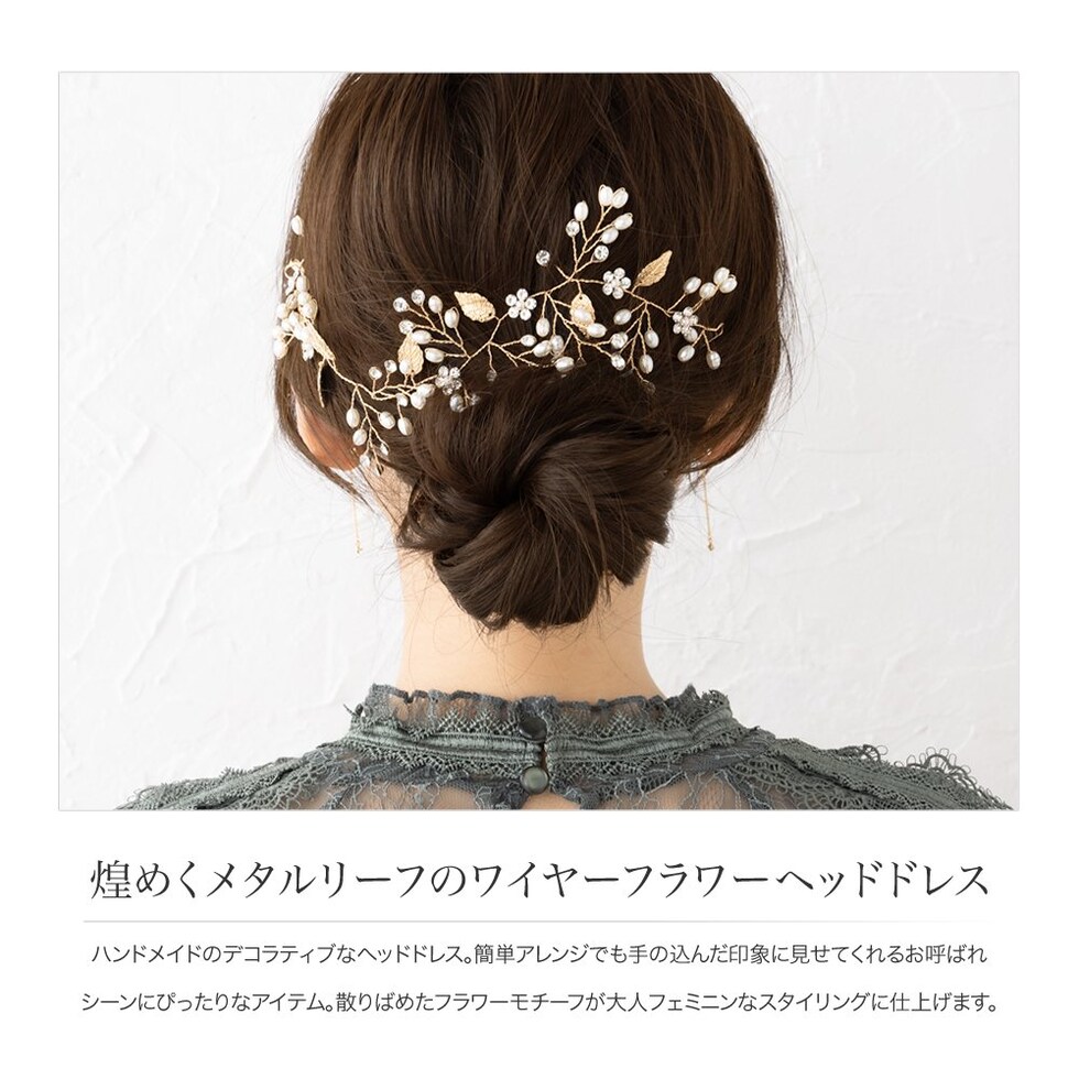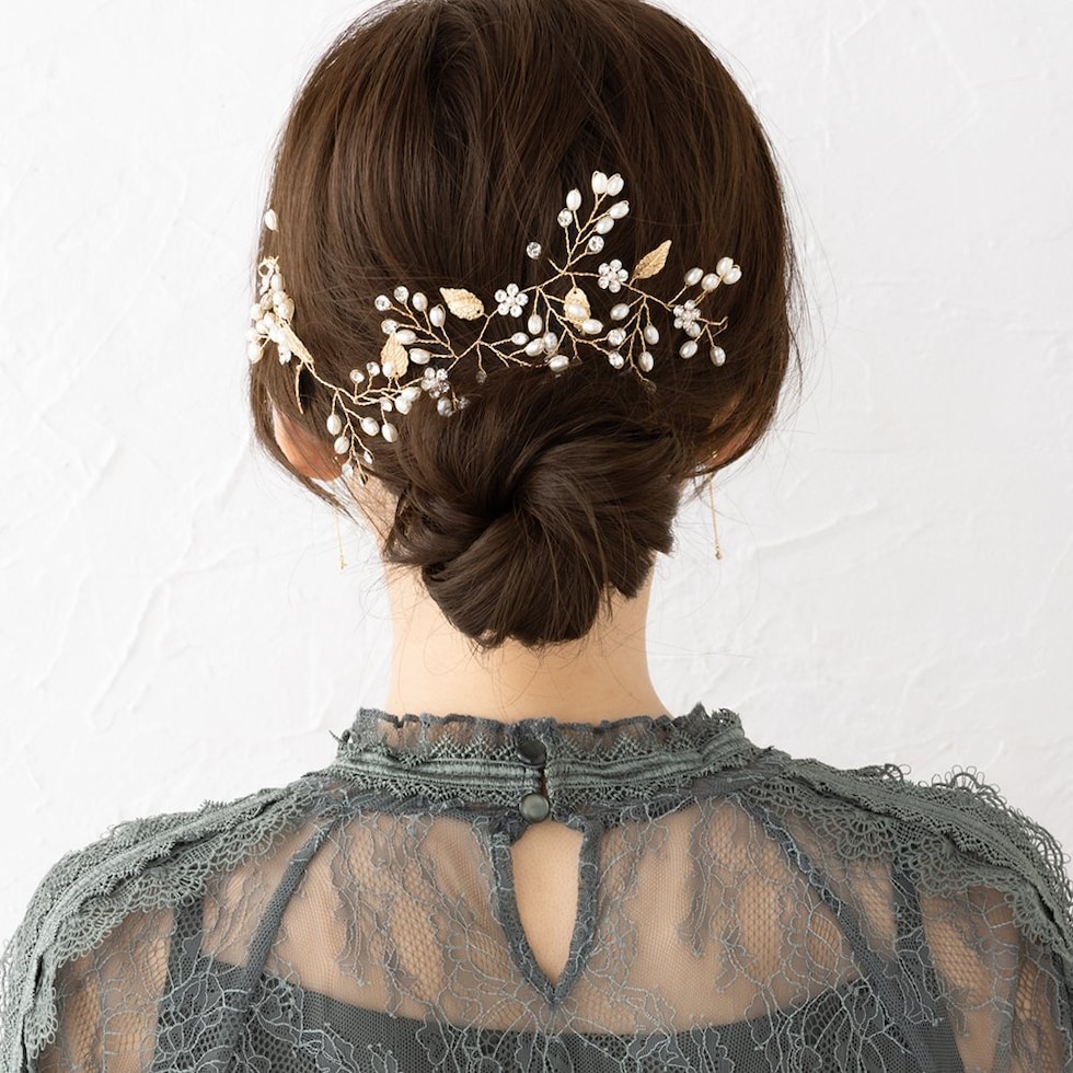 両サイドをヘアピンで留めるだけで簡単に着用が出来るのも嬉しいpoint◎散りばめたパールと煌めくフラワーモチーフの組み合わせが、華やかで大人可愛い印象に仕上げます。