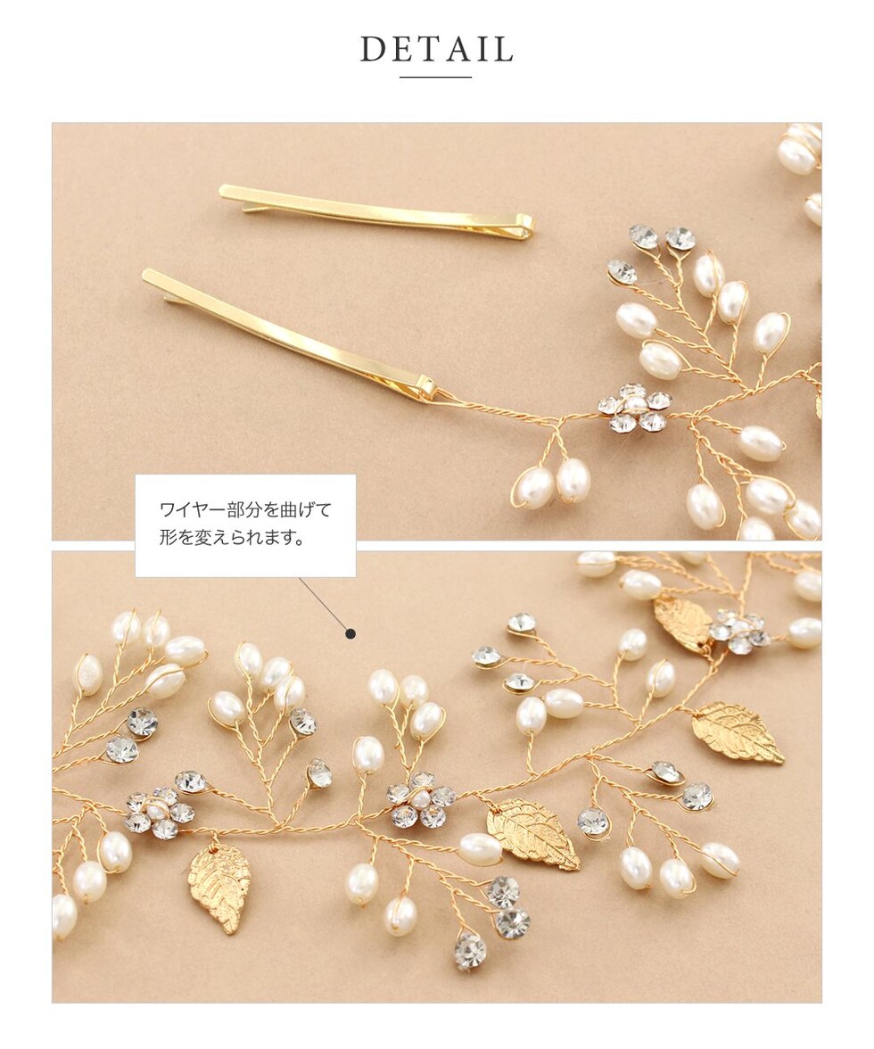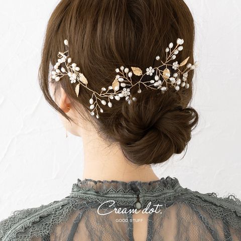 ヘアアクセサリー レディース ヘッドドレス ヘアピン バックカチューシャ 小枝 ヘッドアクセサリー まとめ髪 髪飾り 花飾り 花冠 フラワー パール cream dot ゆうパケット [ゴールド_ワンサイズ]